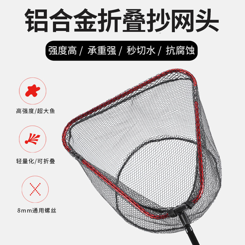 大物抄网头折叠式加深铝合金防挂钩青鱼鲢鳙巨物抄网捞鱼钓鱼网兜