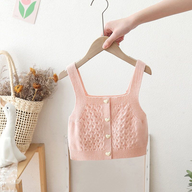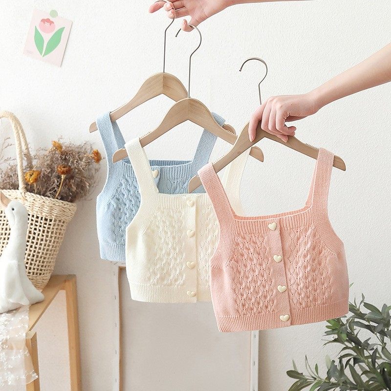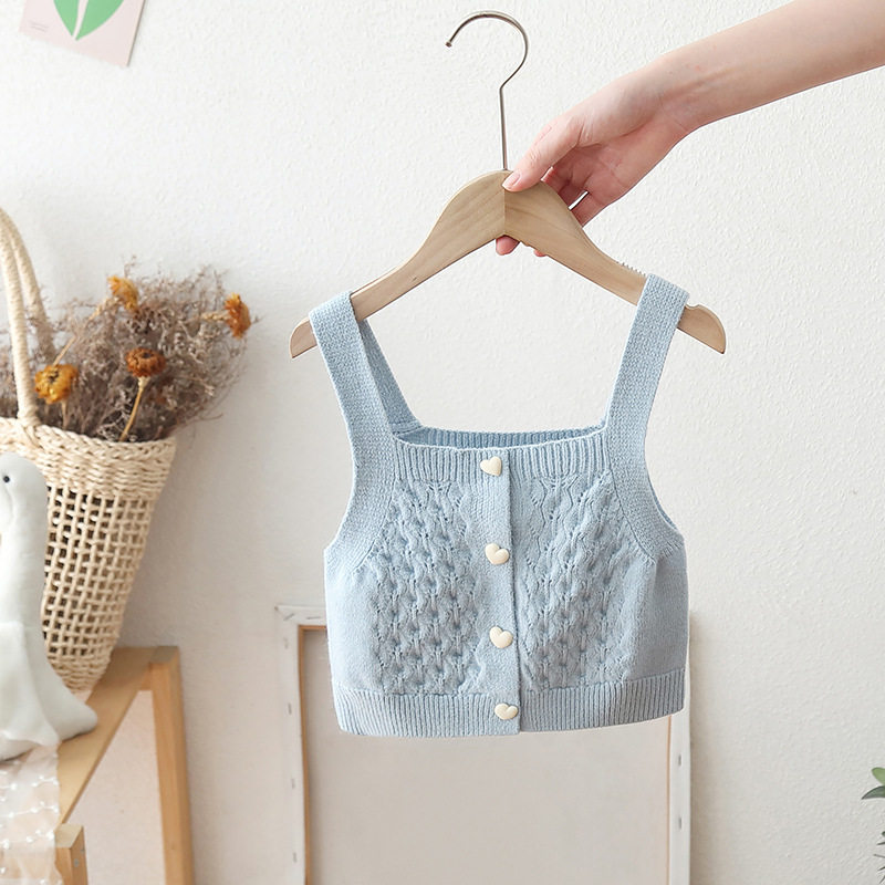 女童毛衣吊带背心针织衫外穿2025秋季新款女宝宝纯色开衫马甲坎肩