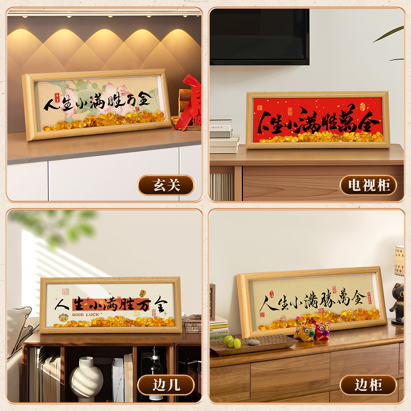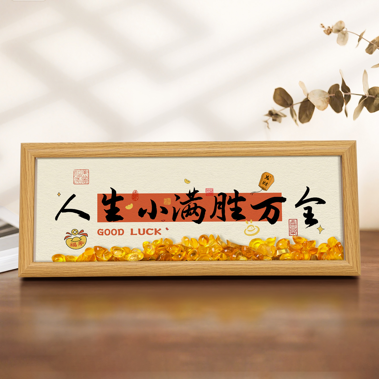 人生小满胜万全书法相框摆台福入户门喜庆氛围摆件客厅祝福装饰画