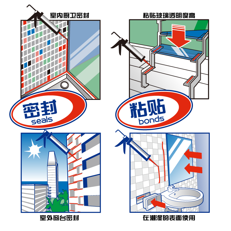 马贝MAPEI弹性硅胶MS45&Crystal万能胶密封胶玻璃胶堵漏水中作业