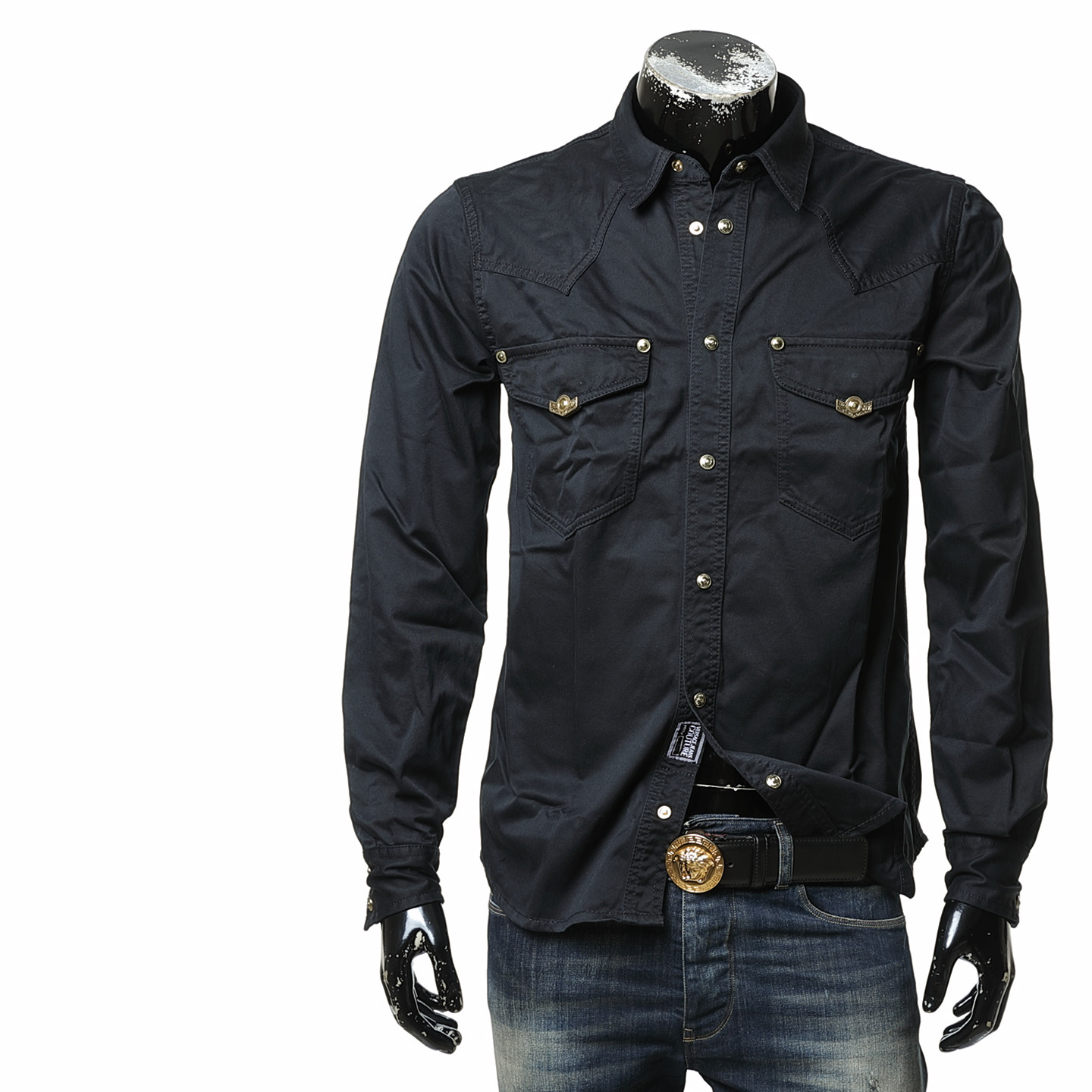 Versace/范思哲VJ 男士时尚奢潮金扣牛仔长袖衬衫 78GAL250 CDWRB