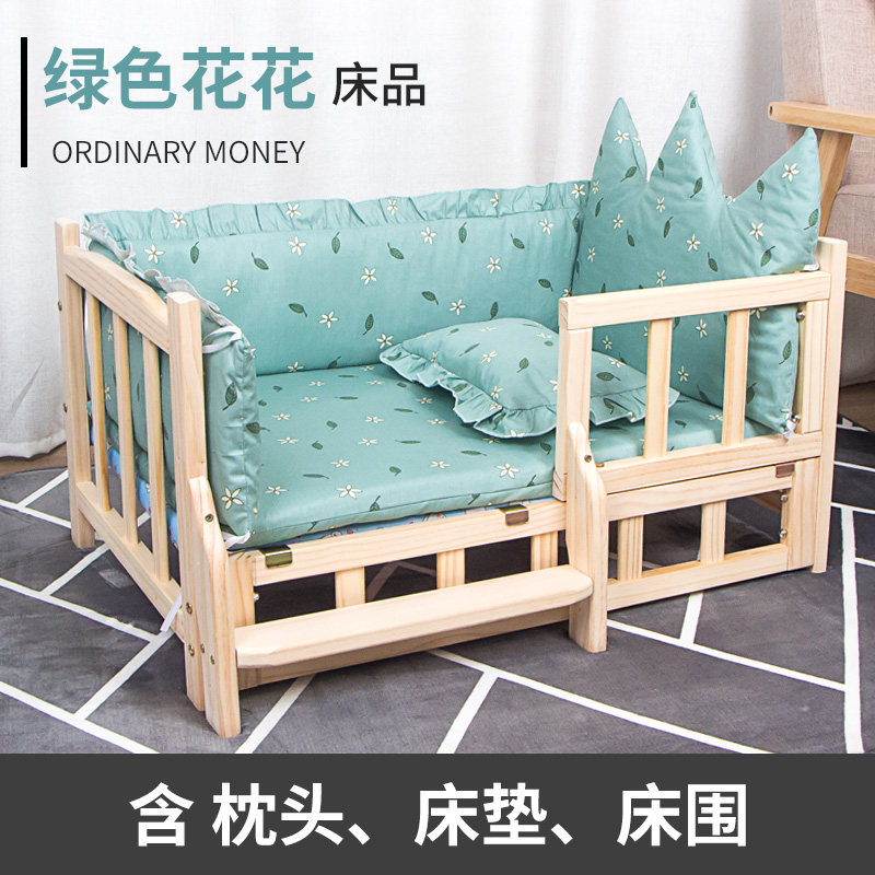 狗狗床宠物床床品三件套床垫枕头床围实木可拆洗冬季加厚保暖用品