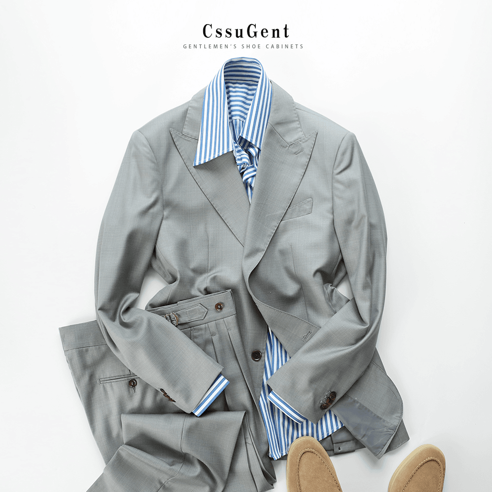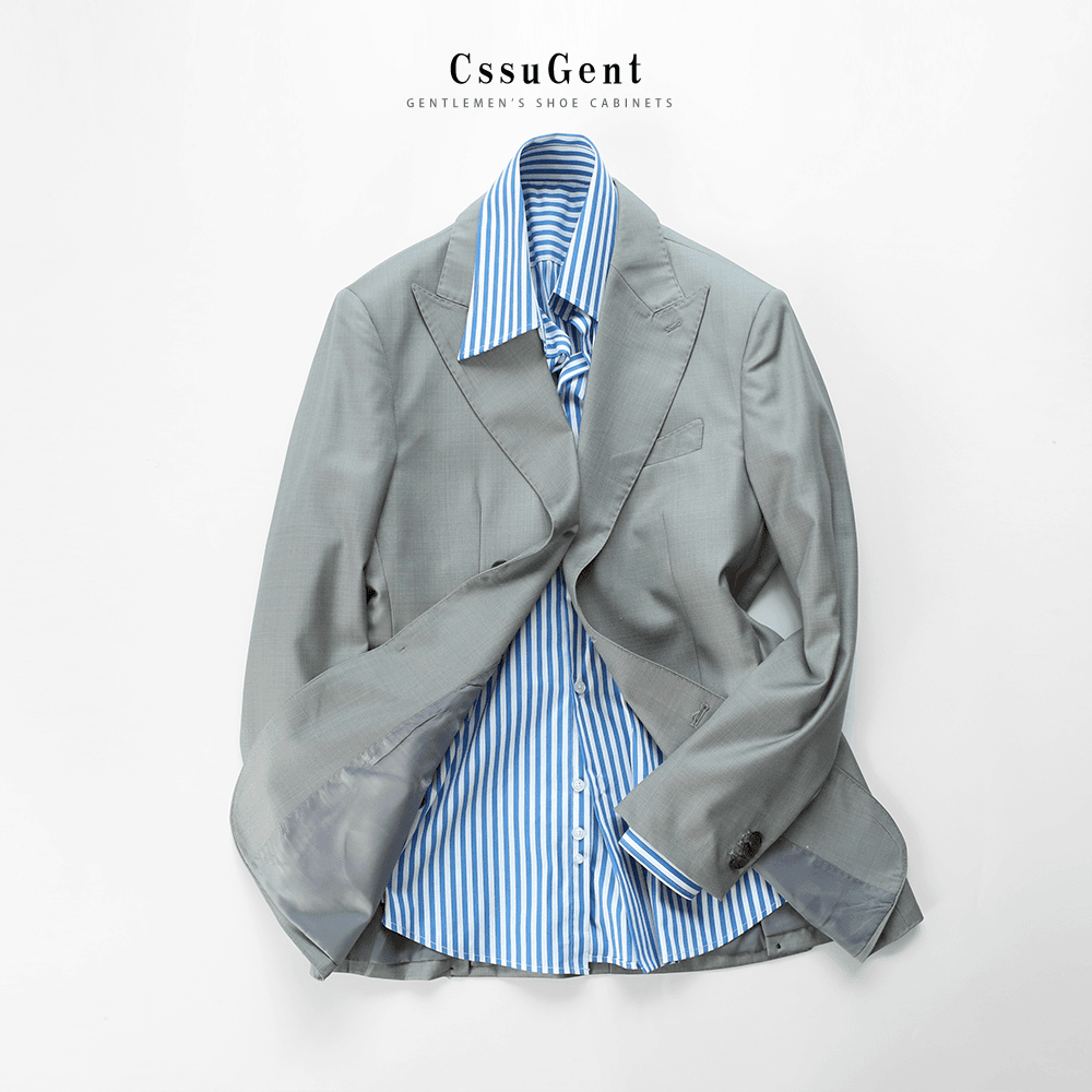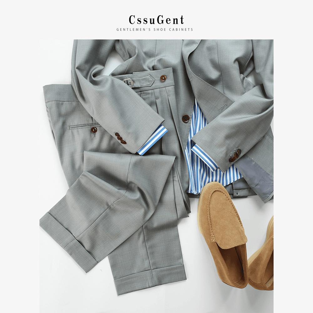 定制级时尚绅士轻奢灰戗驳领西服套装男士商务婚宴主持经典西服