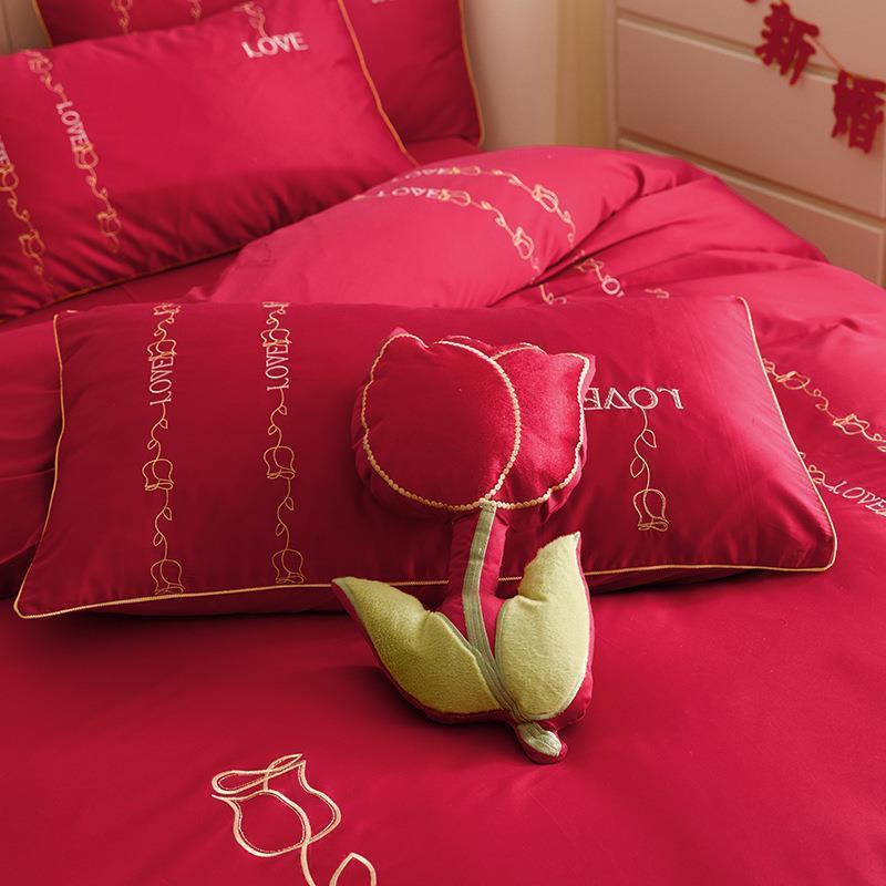 100支长绒棉结婚四件套大红色床单纯棉喜被家居婚庆被套床上用品