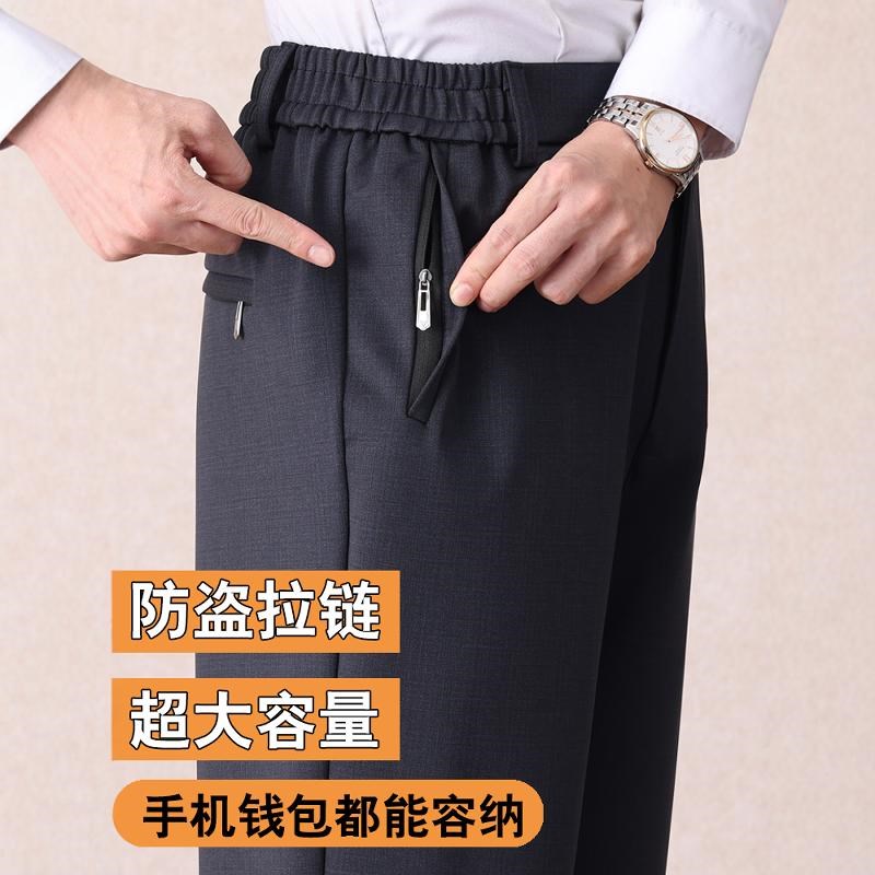 爸爸裤子春秋款2024新款中年男士休闲裤50岁中老年人松紧腰西装裤