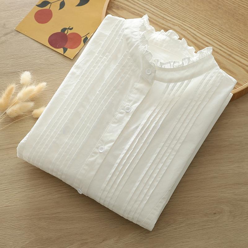 白色长袖衬衫女设计感精致花边通勤2024秋季新款法式简约洋气女装