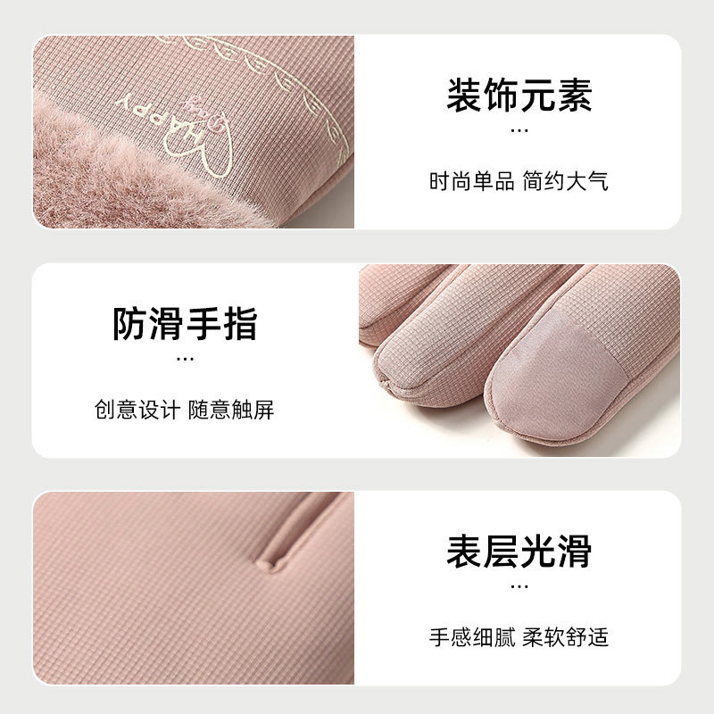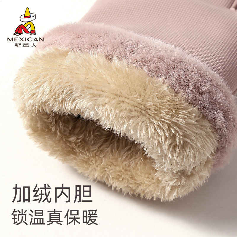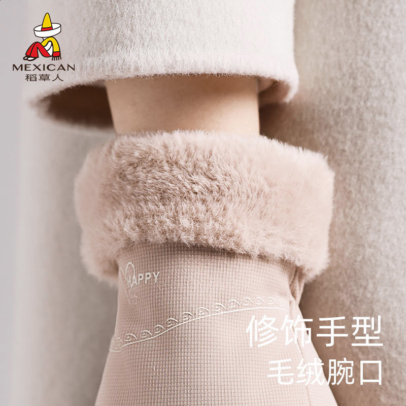稻草人手套女士冬季保暖加绒可爱骑行骑电动车加厚防风寒触屏手套