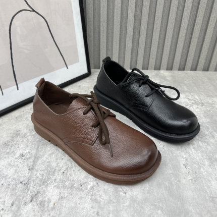 复古风牛皮妈妈鞋低帮女士单鞋