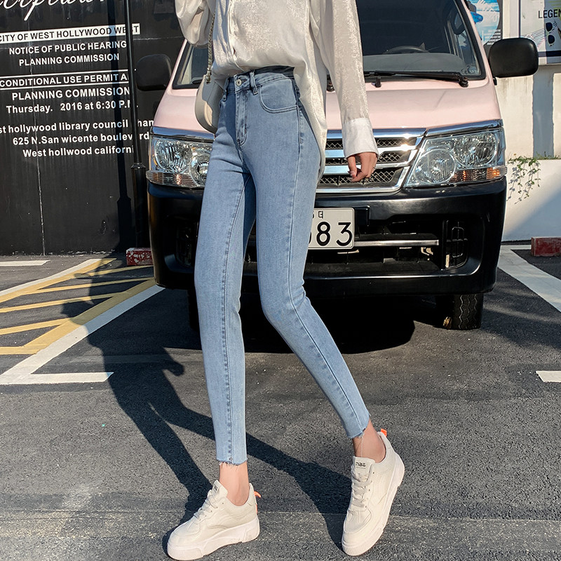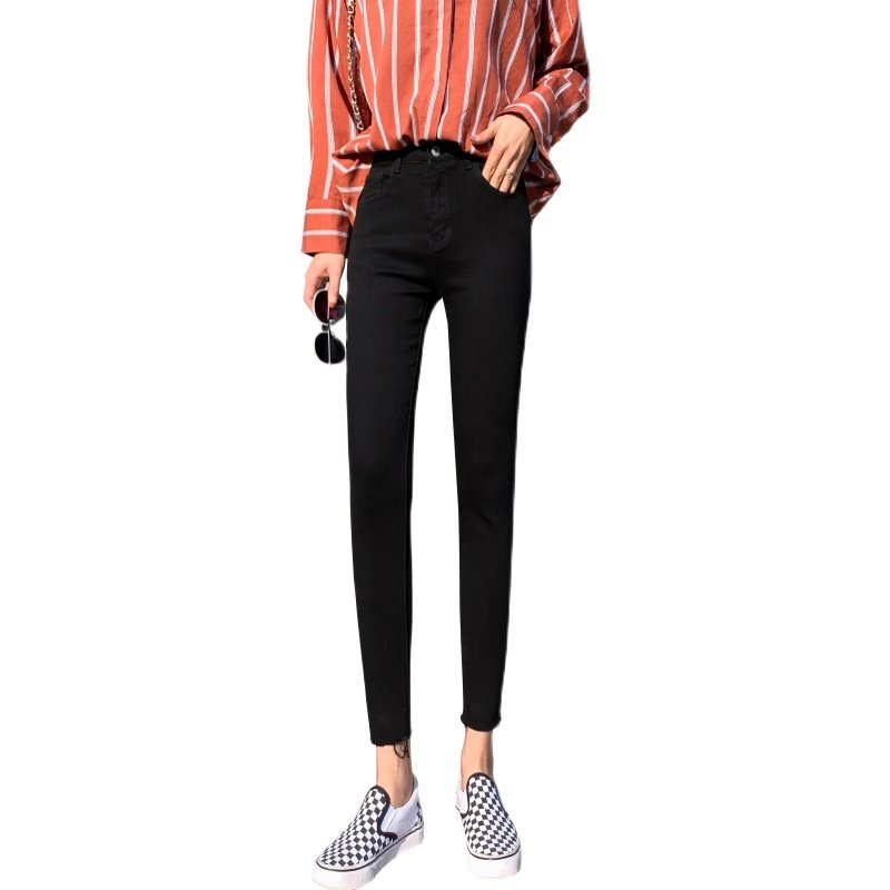 八分小个子高腰加绒牛仔铅笔裤女加厚带绒显瘦九分紧身小脚长裤子