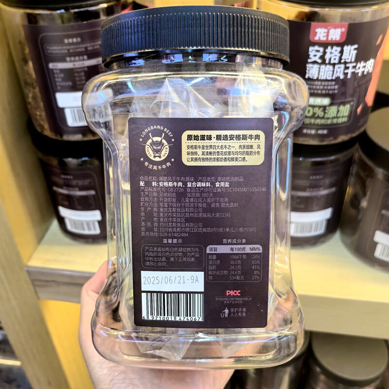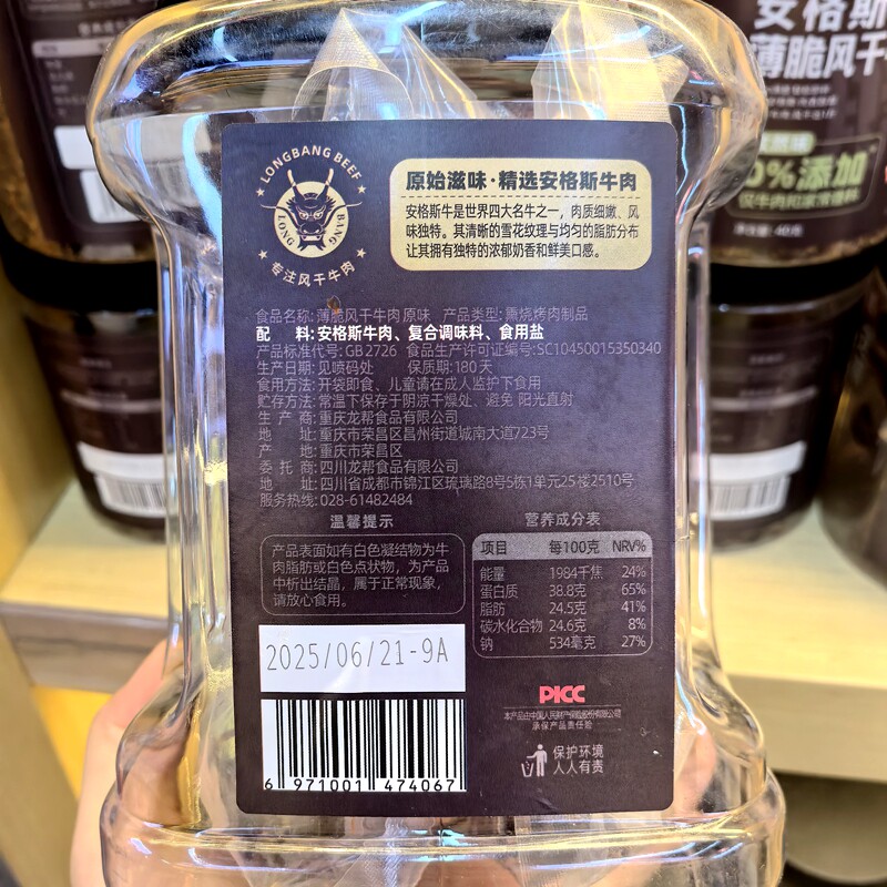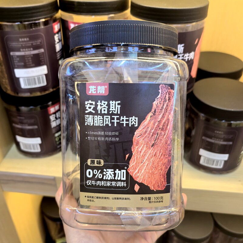 龙帮安格斯薄片风干牛肉100g*3罐薄脆牛肉脆片零食原味牛肉干零食