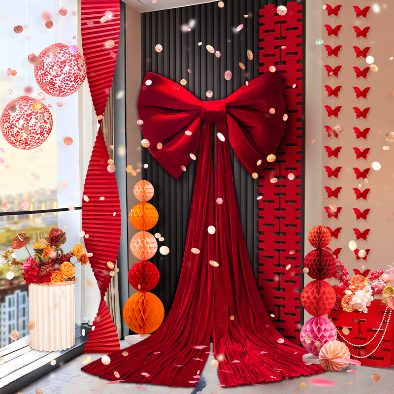 结婚大蝴蝶结装饰婚房布置套装女方卧室男方新房拉花订婚婚礼用品