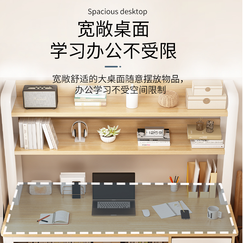 电脑桌家用学生学习写字桌台式办公桌工作台书桌书架一体简约现代