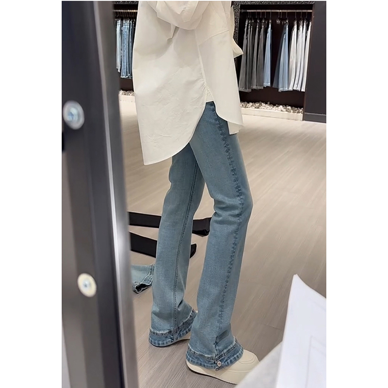 梨型身材裤子大码高腰浅蓝色微喇牛仔裤女秋胖mm显瘦大长腿喇叭裤