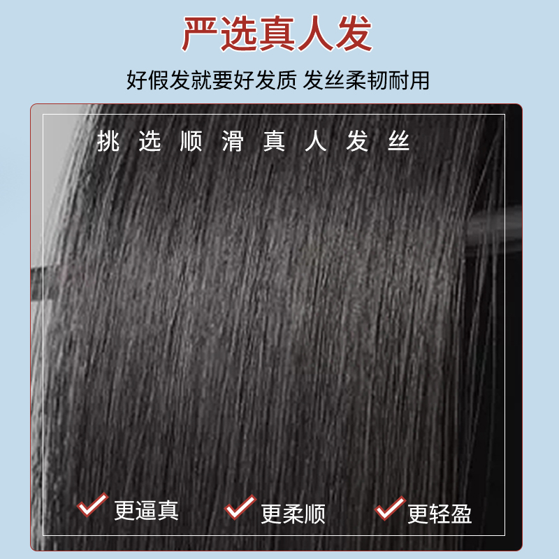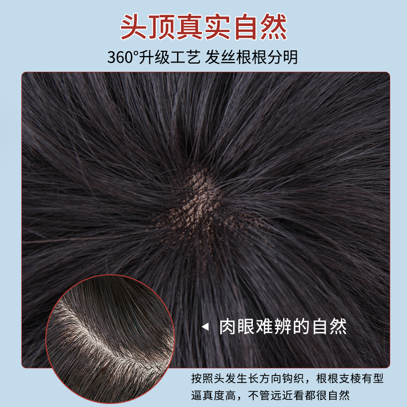 假发男士背头短发隐形补发片自然蓬松头顶假发片全真人发轻薄透气