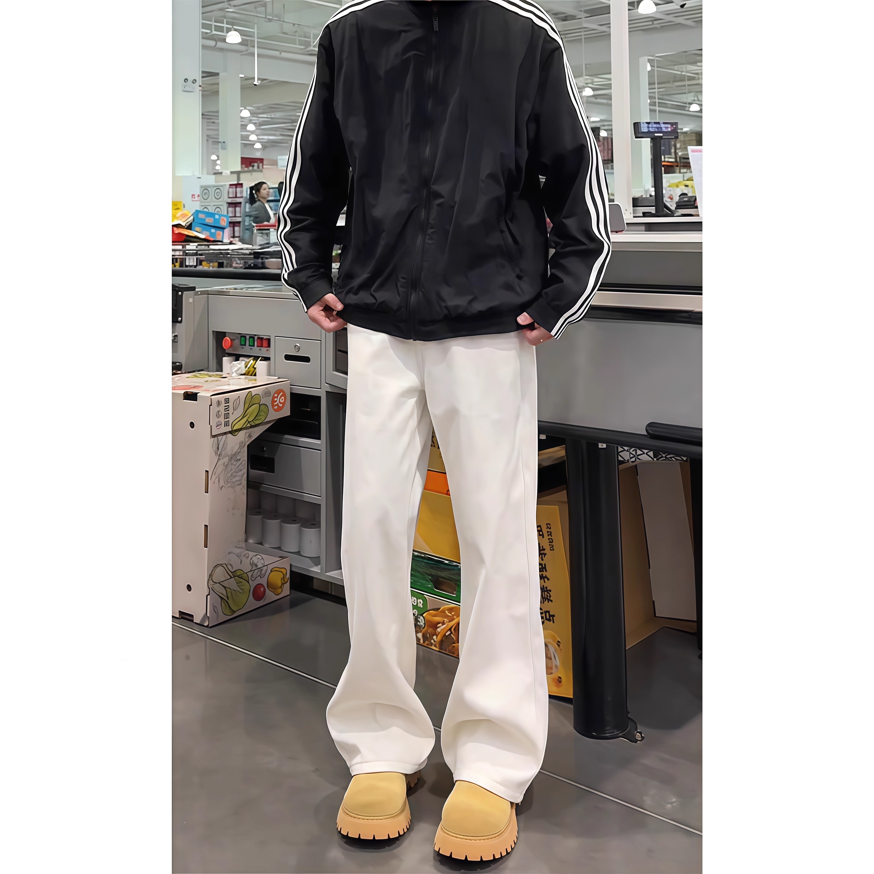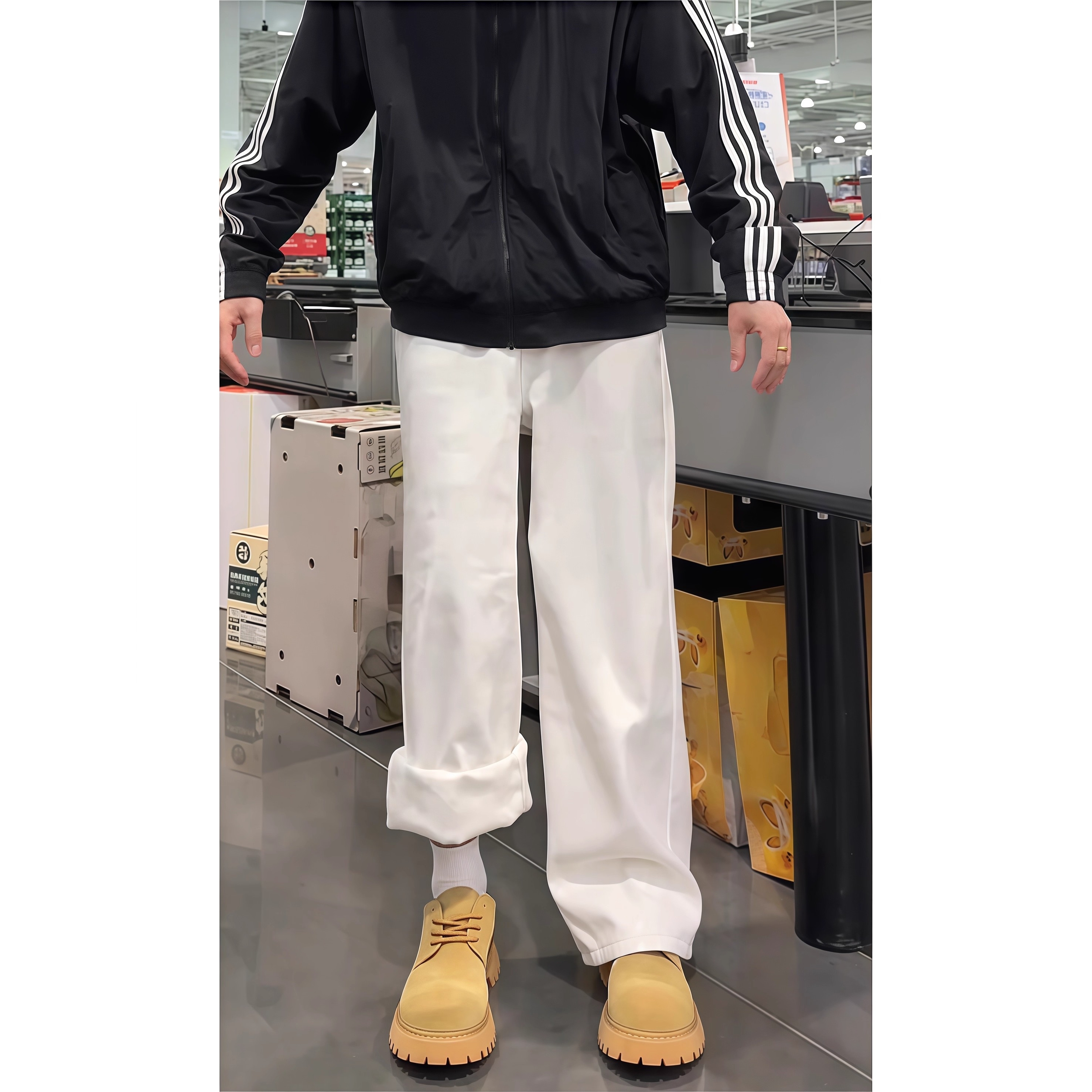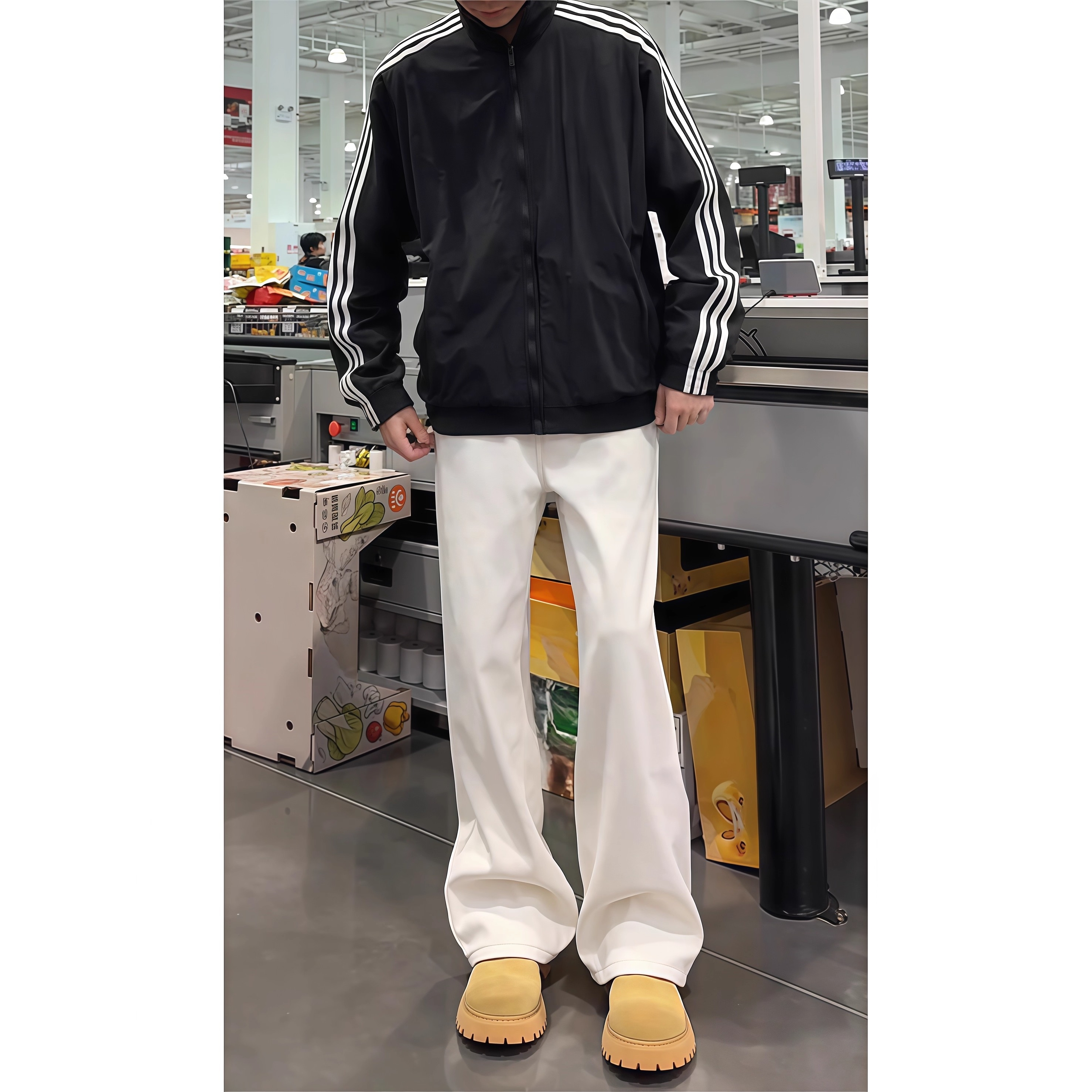 白色cleanfit弯刀牛仔裤男款秋冬加绒加厚保暖修身显瘦高街微喇裤