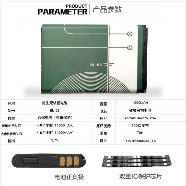 德生熊猫收音机BL-5C BL-5B 3.7V锂电池插卡音箱复读机手机充电池