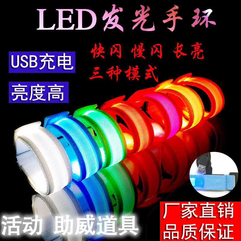 发光手环夜跑骑行户外装备夜跑灯手臂带LED充电反光夜光闪光手环