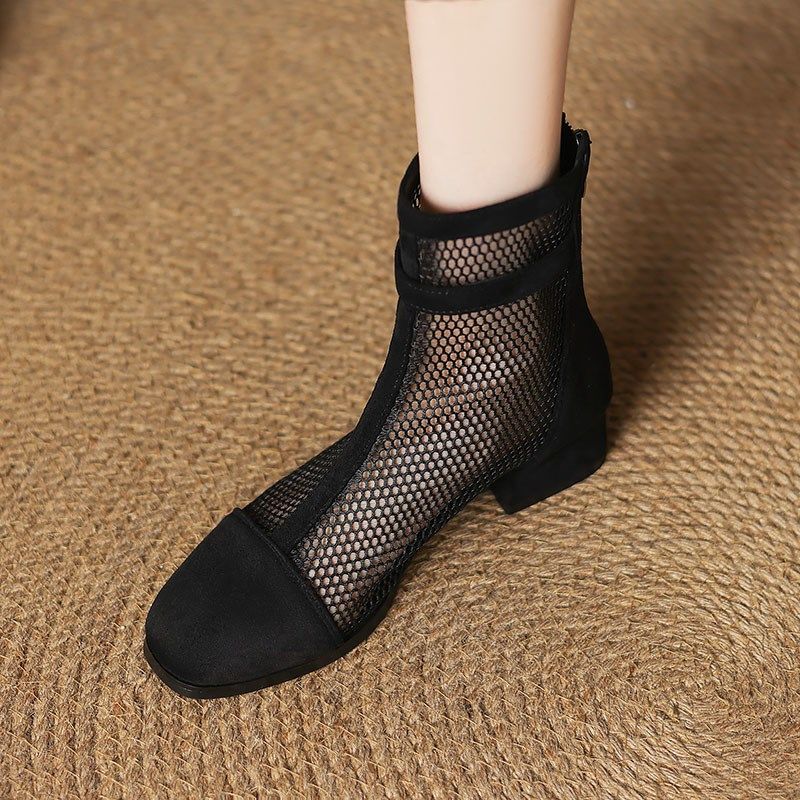 夏季镂空网纱短靴女靴子新款凉鞋网面靴女鞋春秋低跟粗跟透气凉靴