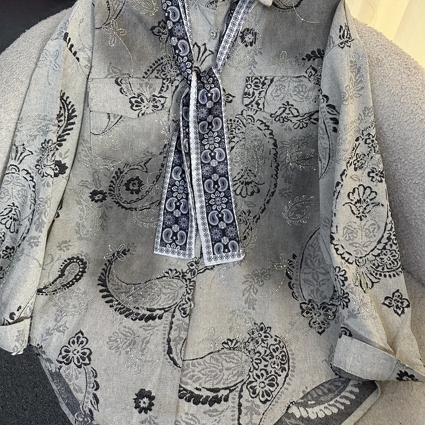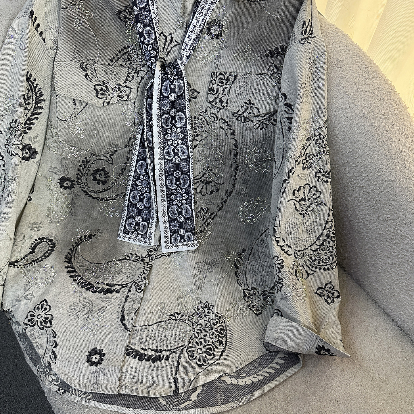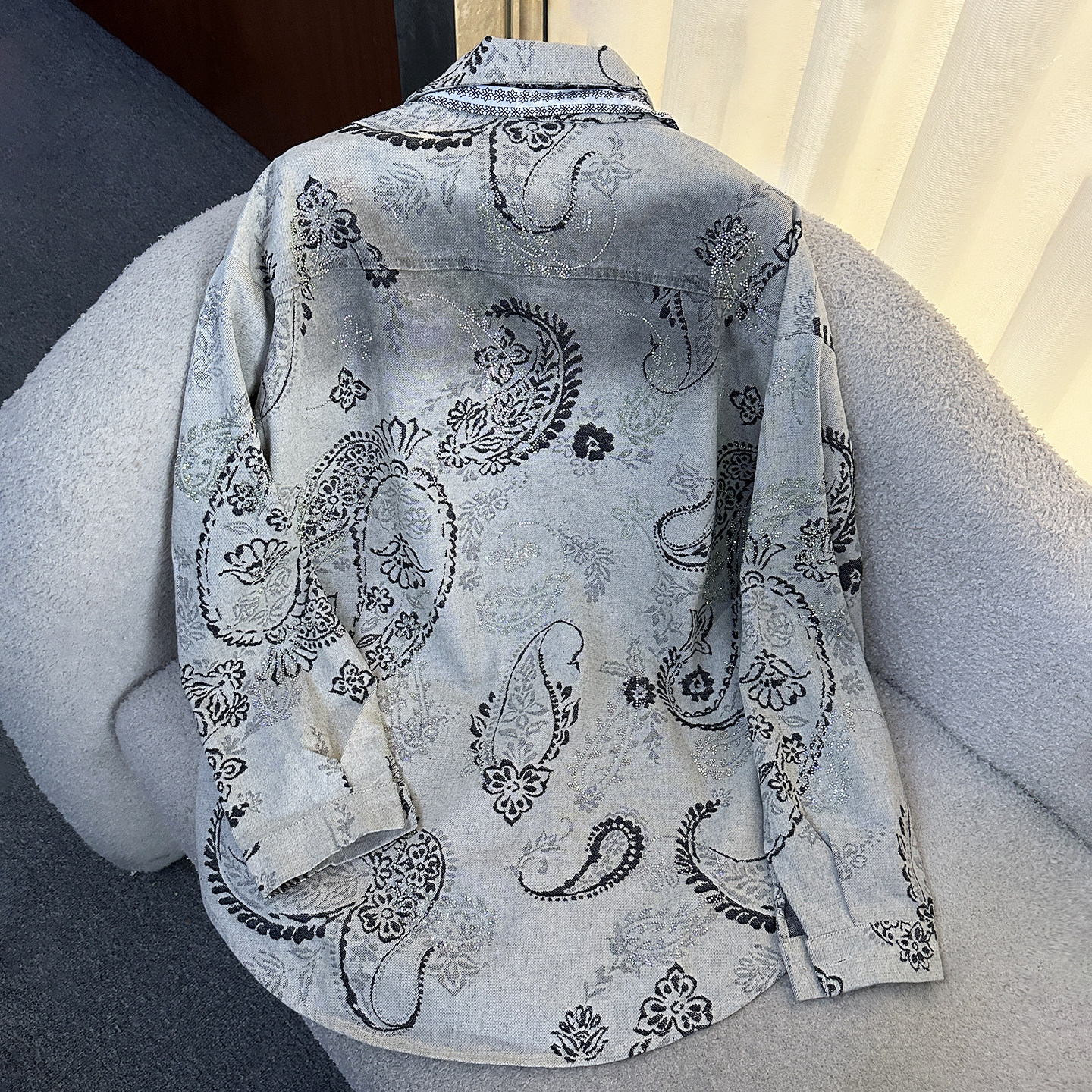 2025秋季重工新款烫钻牛仔长袖衬衫外套女宽松休闲时尚中长款上衣