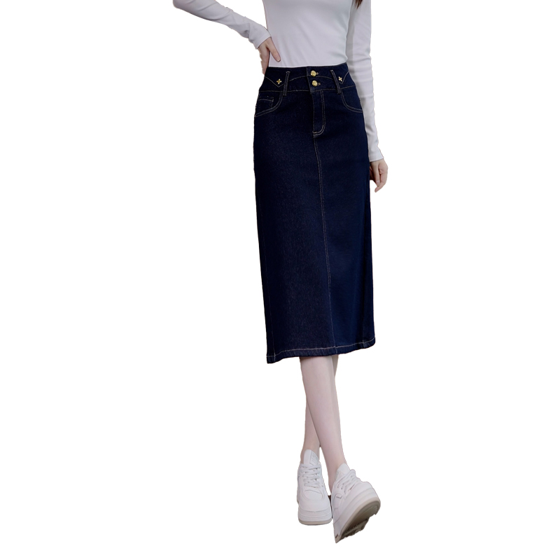 高腰开叉牛仔半身裙女2024年新款春秋季显瘦a字半裙复古包臀长裙