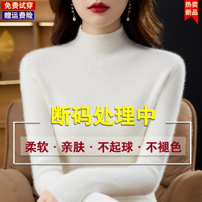 春竹羊毛衫女士秋冬加厚半高领毛衣百搭修身保暖加厚针织打底衫