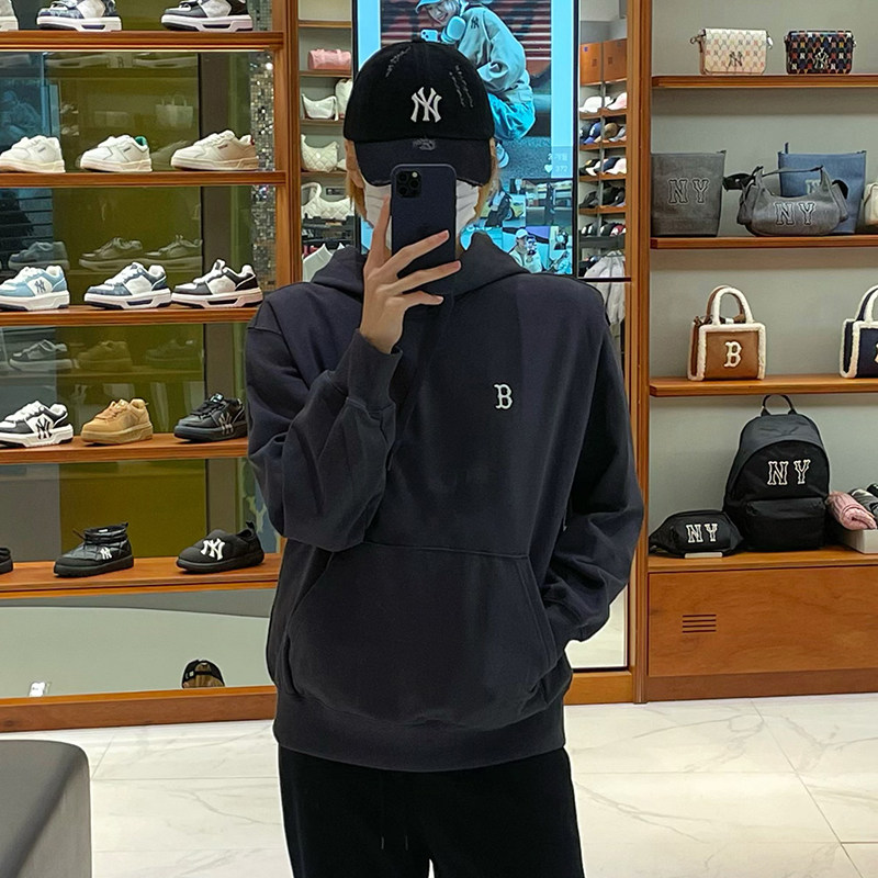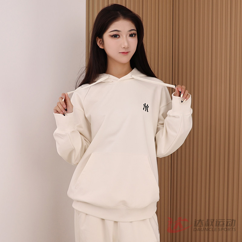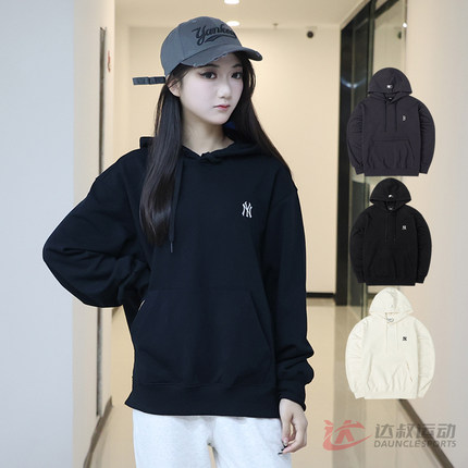 25新款MLB情侣卫衣男女NY小标刺绣纯色连帽运动套头衫3AHDB0151