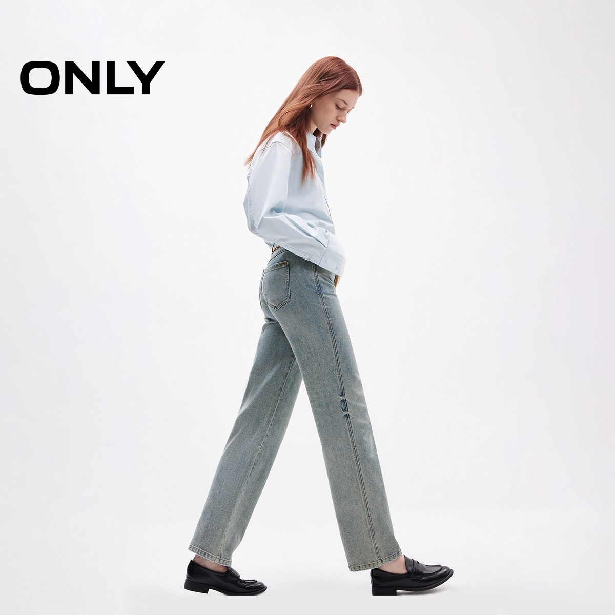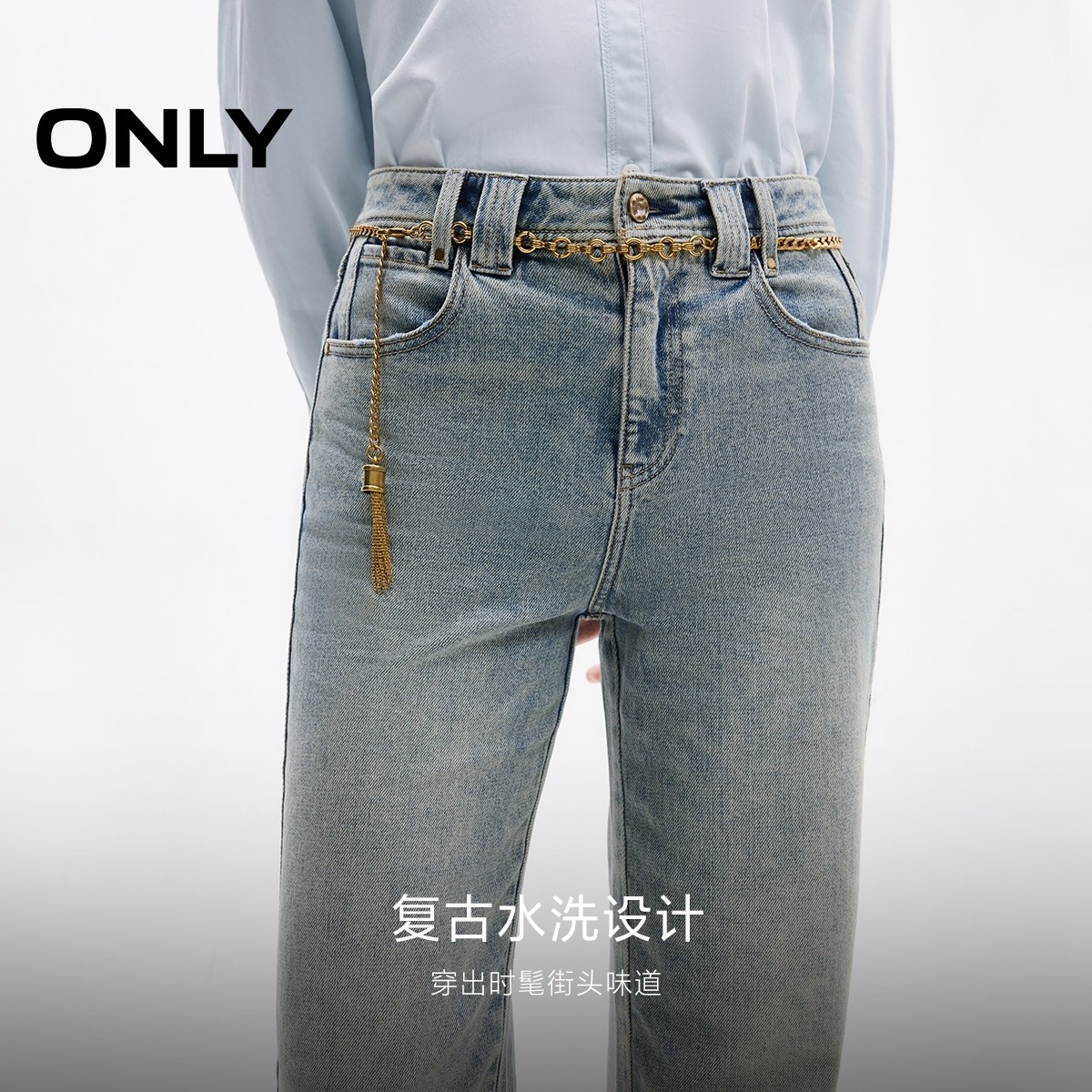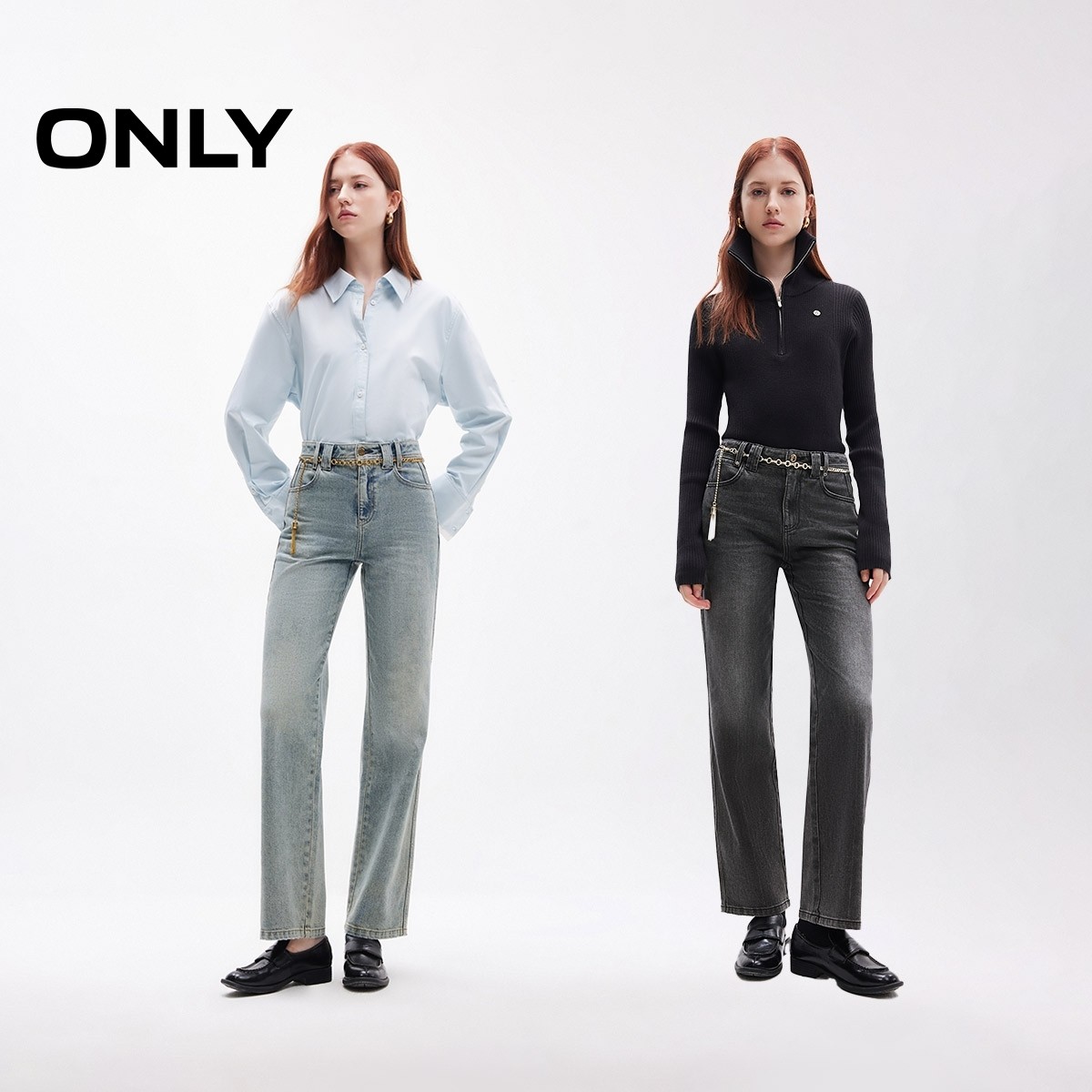 ONLY2025秋季新款复古百搭长裤腰链装饰直筒裤牛仔裤女|125132024