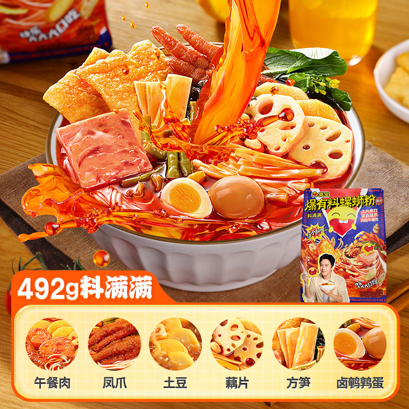 臭宝爆有料螺蛳粉肉多多487g料满满492g组合大片腐竹凤爪卤蛋米粉