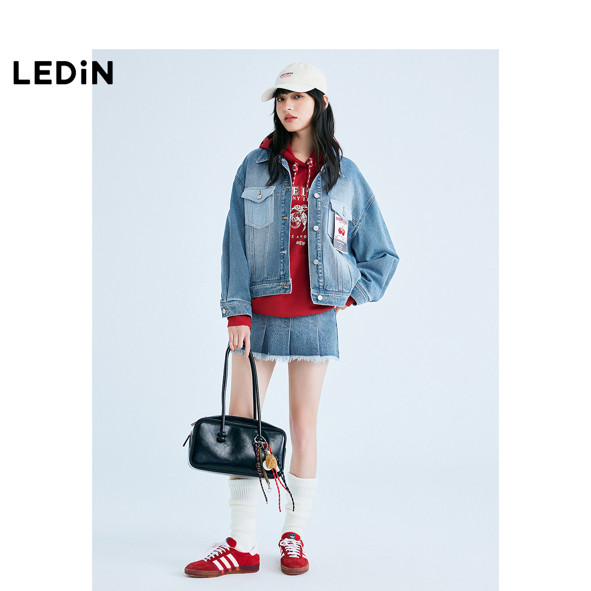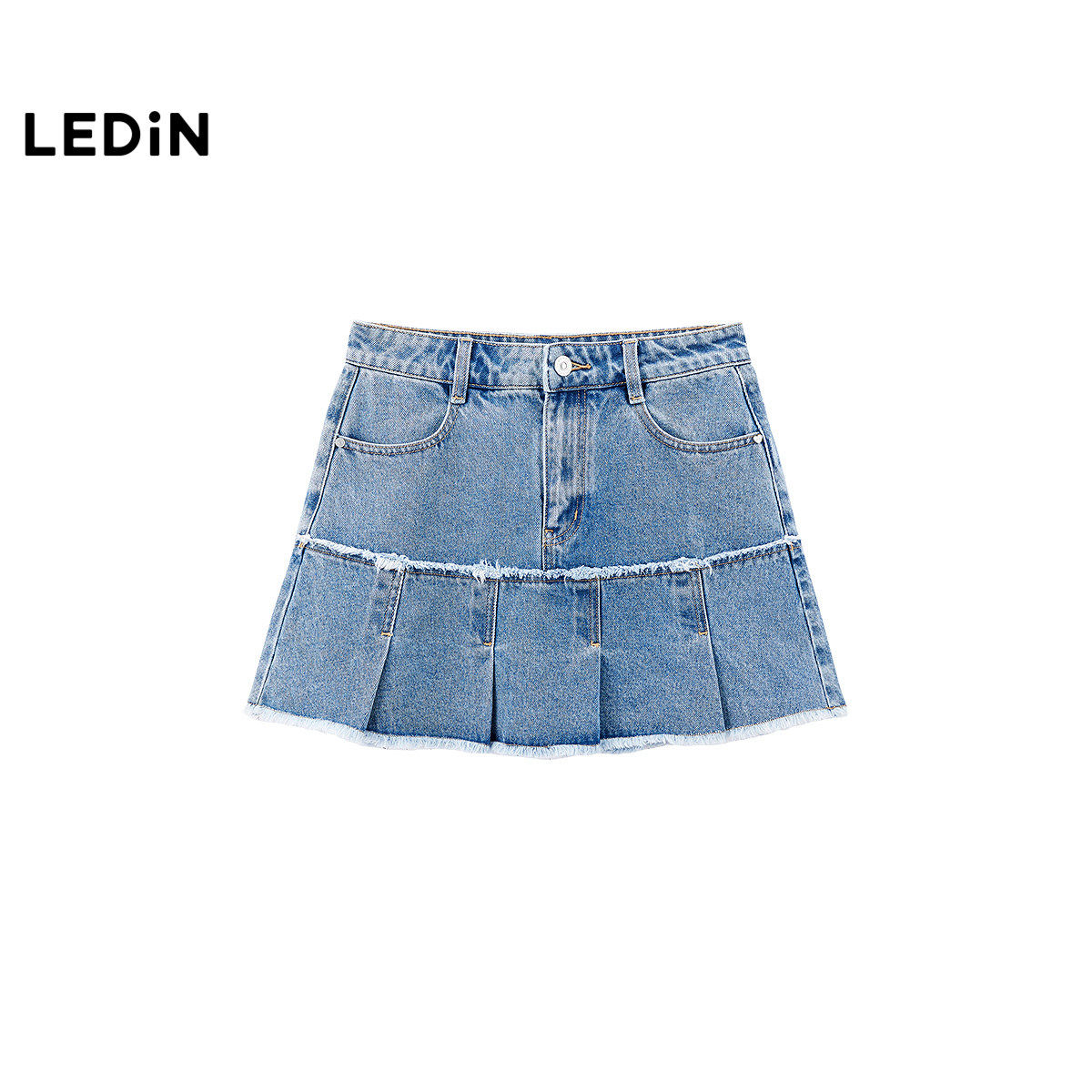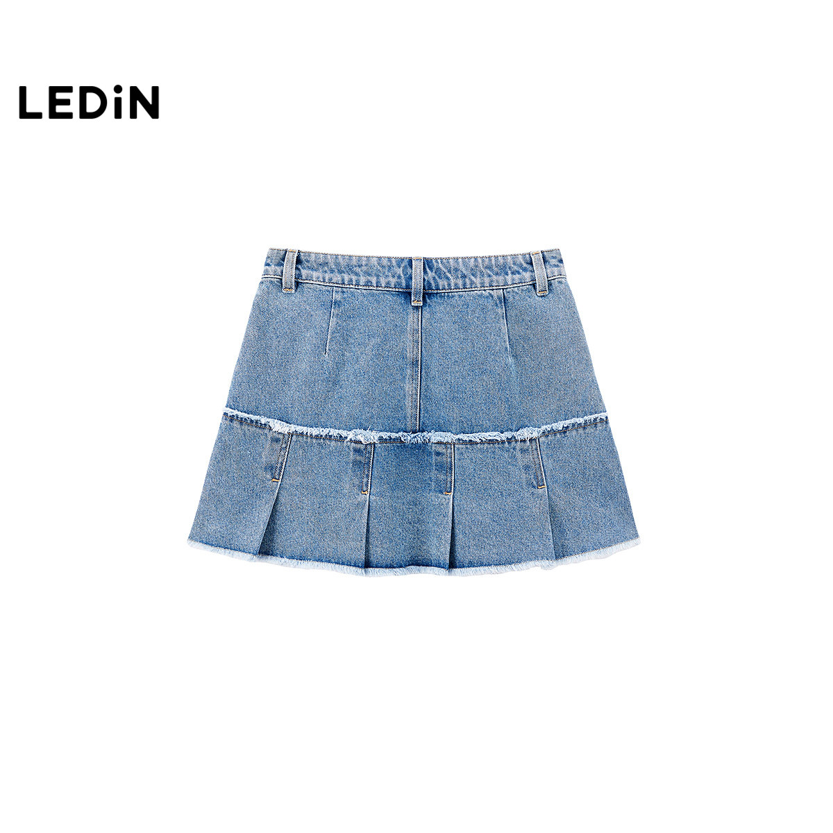 【商场同款】乐町拼接毛边牛仔短裙25年春季新款A字半裙C2HEF1312
