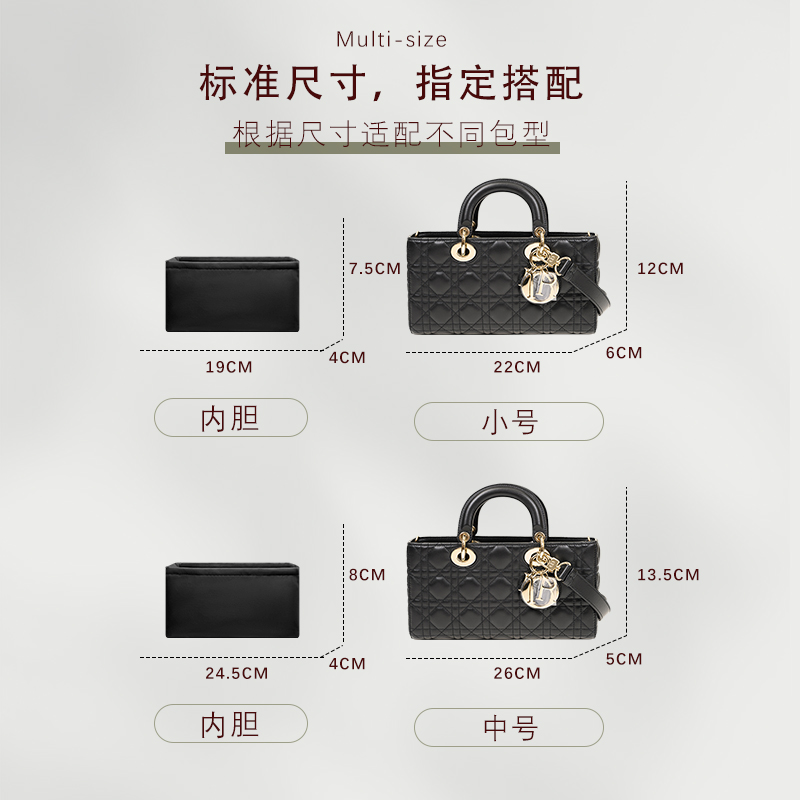 适用于DIOR迪奥Lady D-Joy手袋横版戴妃包内胆包中包撑收纳内衬袋