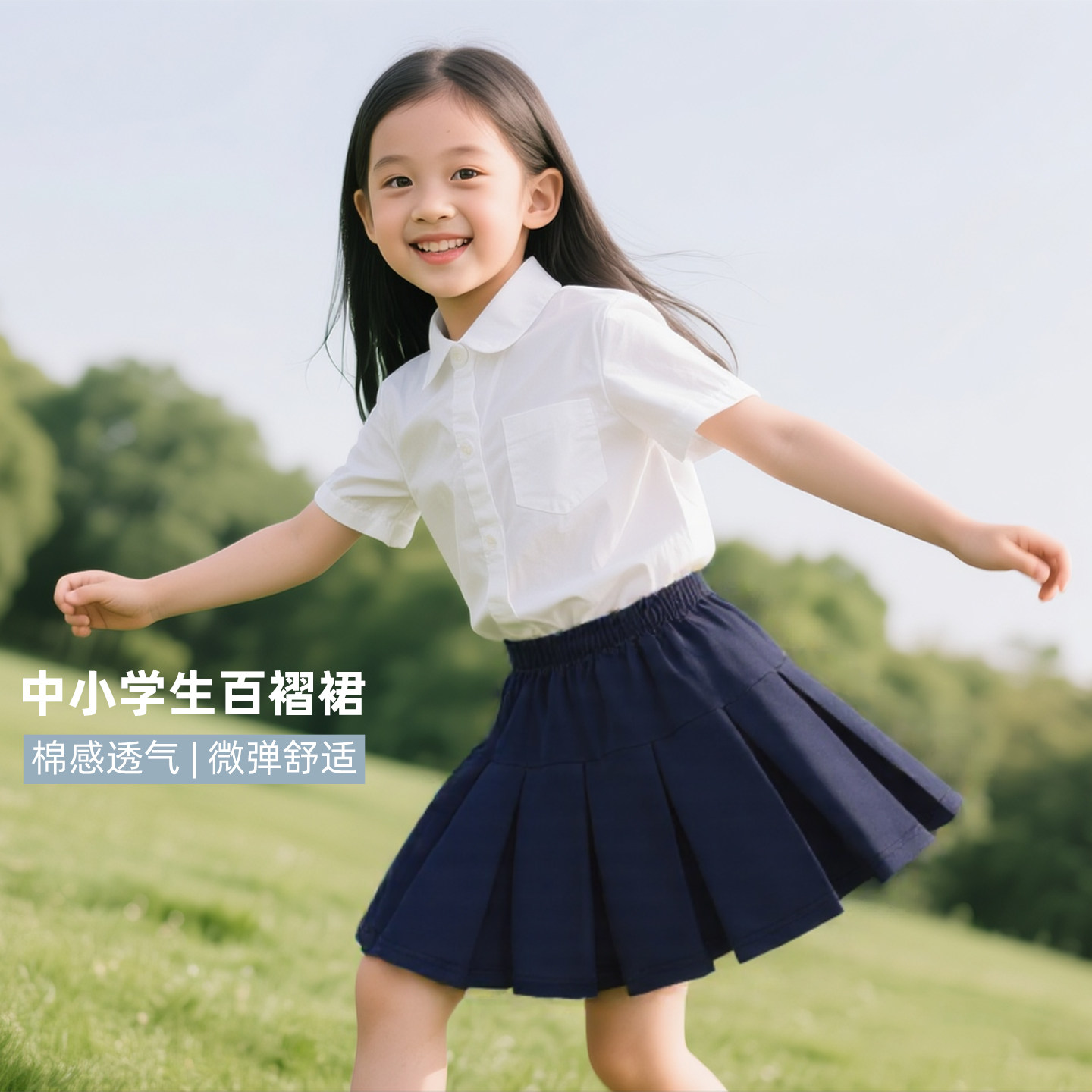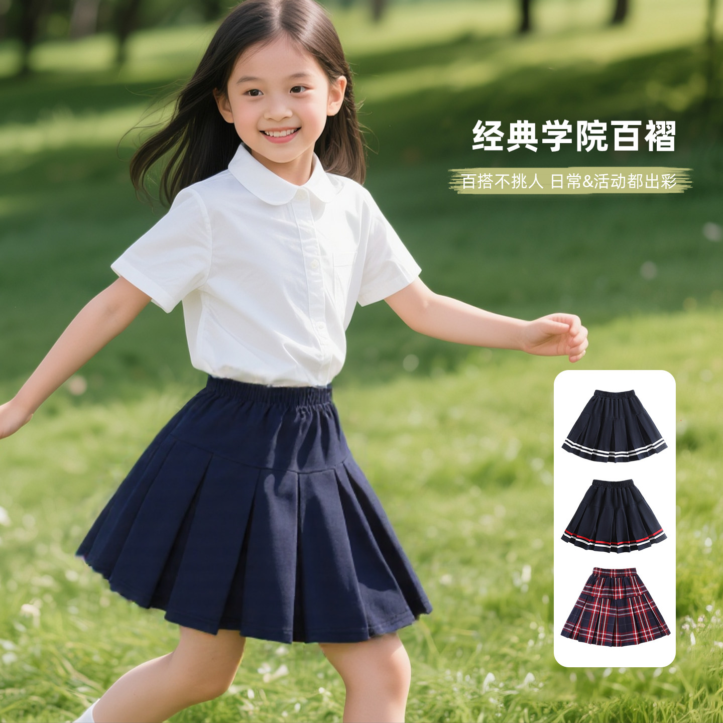 女童百褶裙夏季新款儿童藏青色半身裙子中大童黑色学生校服短裙