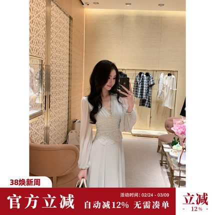 Sun雅乔【流风回雪】夏季轻奢高档5A级桑蚕丝真丝长袖收腰连衣裙