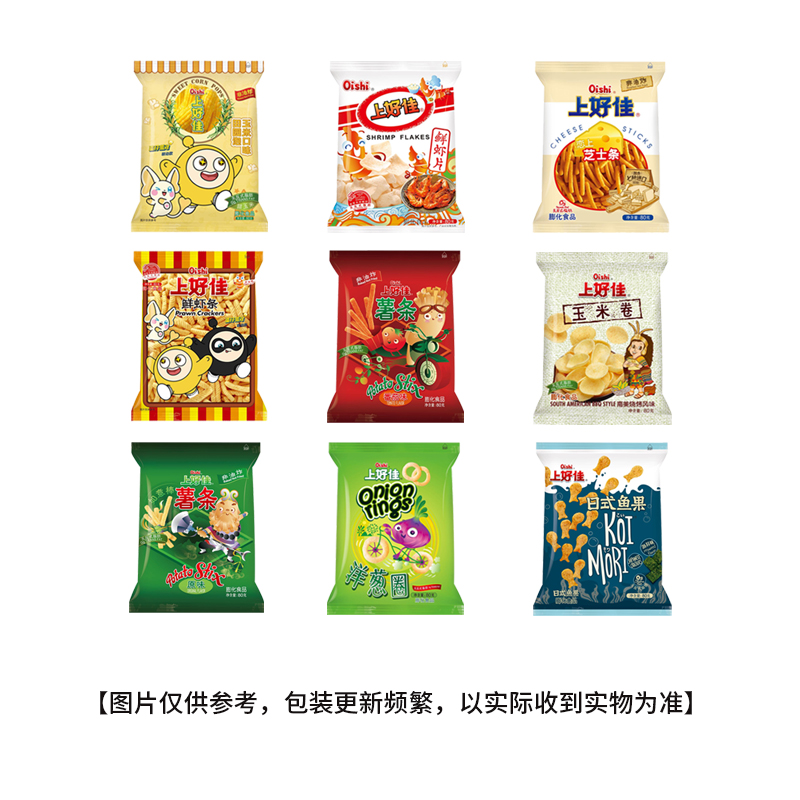 上好佳80g*4袋鲜虾片芝士条田园泡洋葱圈玉米卷薯条休闲小吃零食