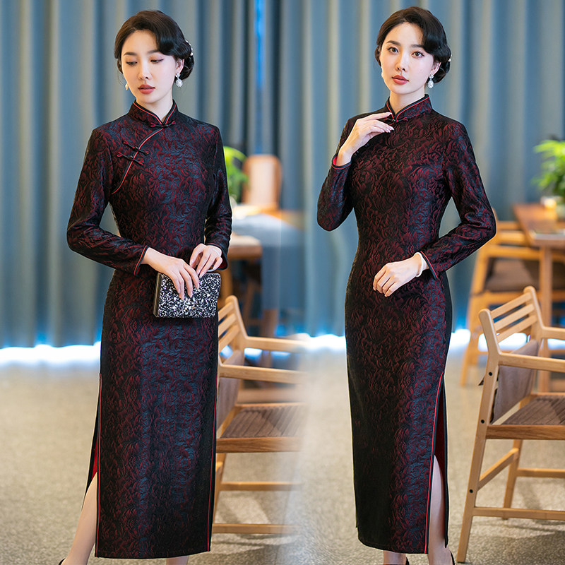 高端长款旗袍秋冬新款女复古中国风喜婆婆婚宴礼服气质优雅连衣裙