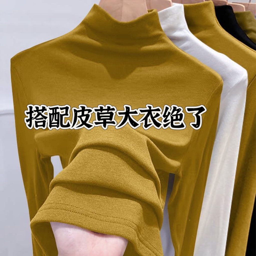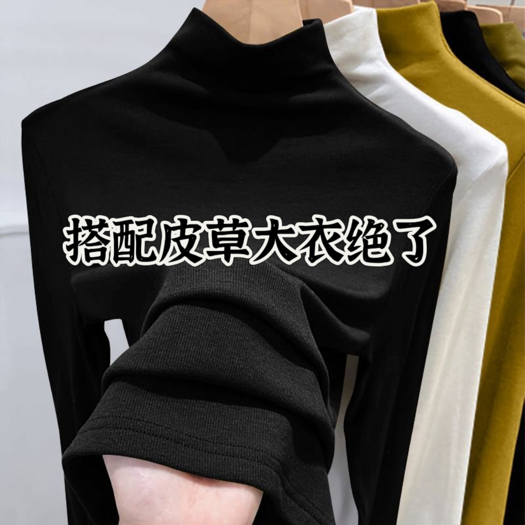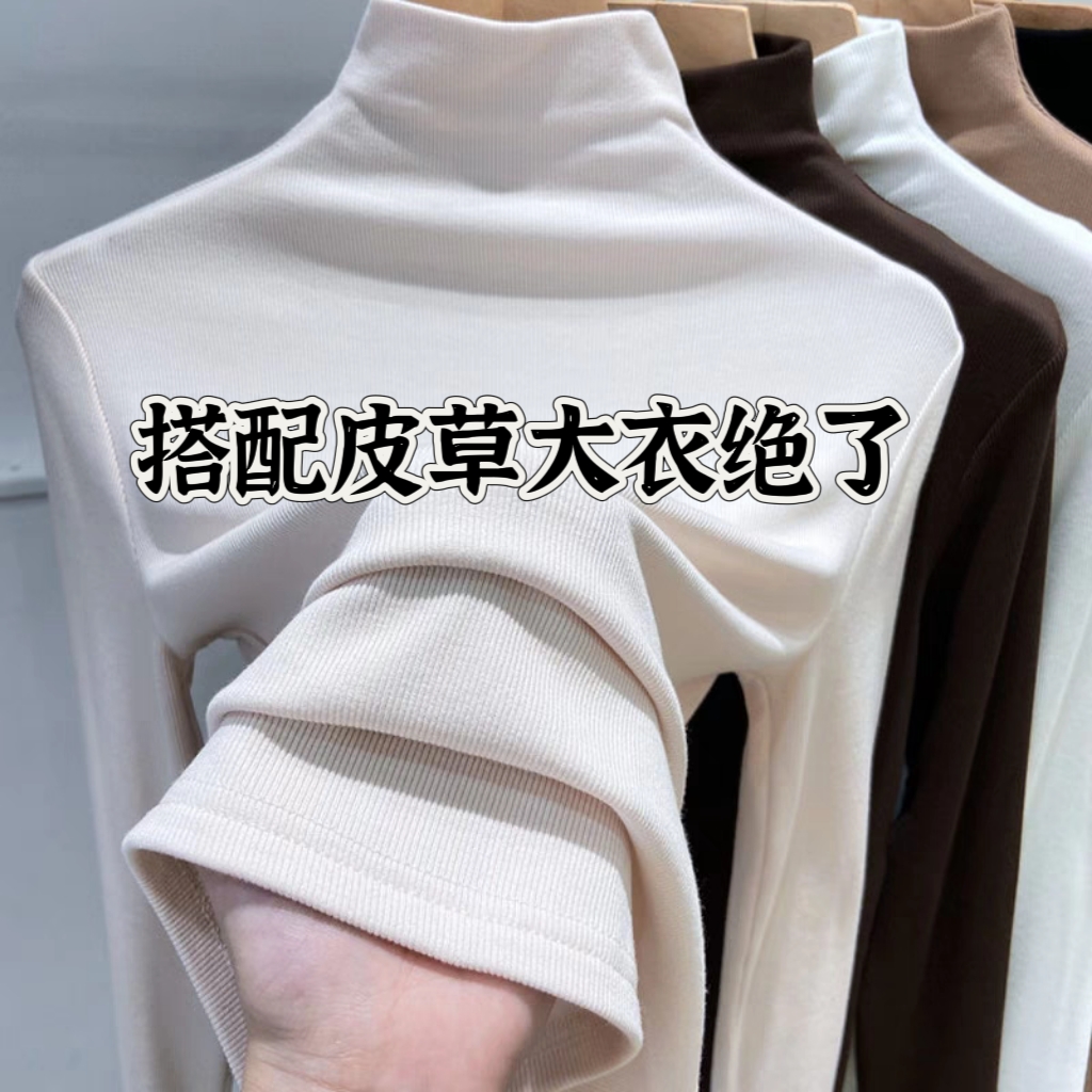 秋冬螺纹打底衫秋衣时尚纯色修身显瘦新款半高领T恤洋气长袖上衣