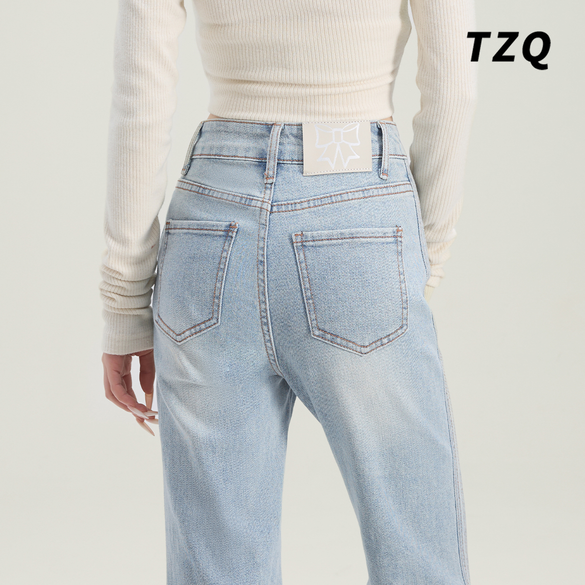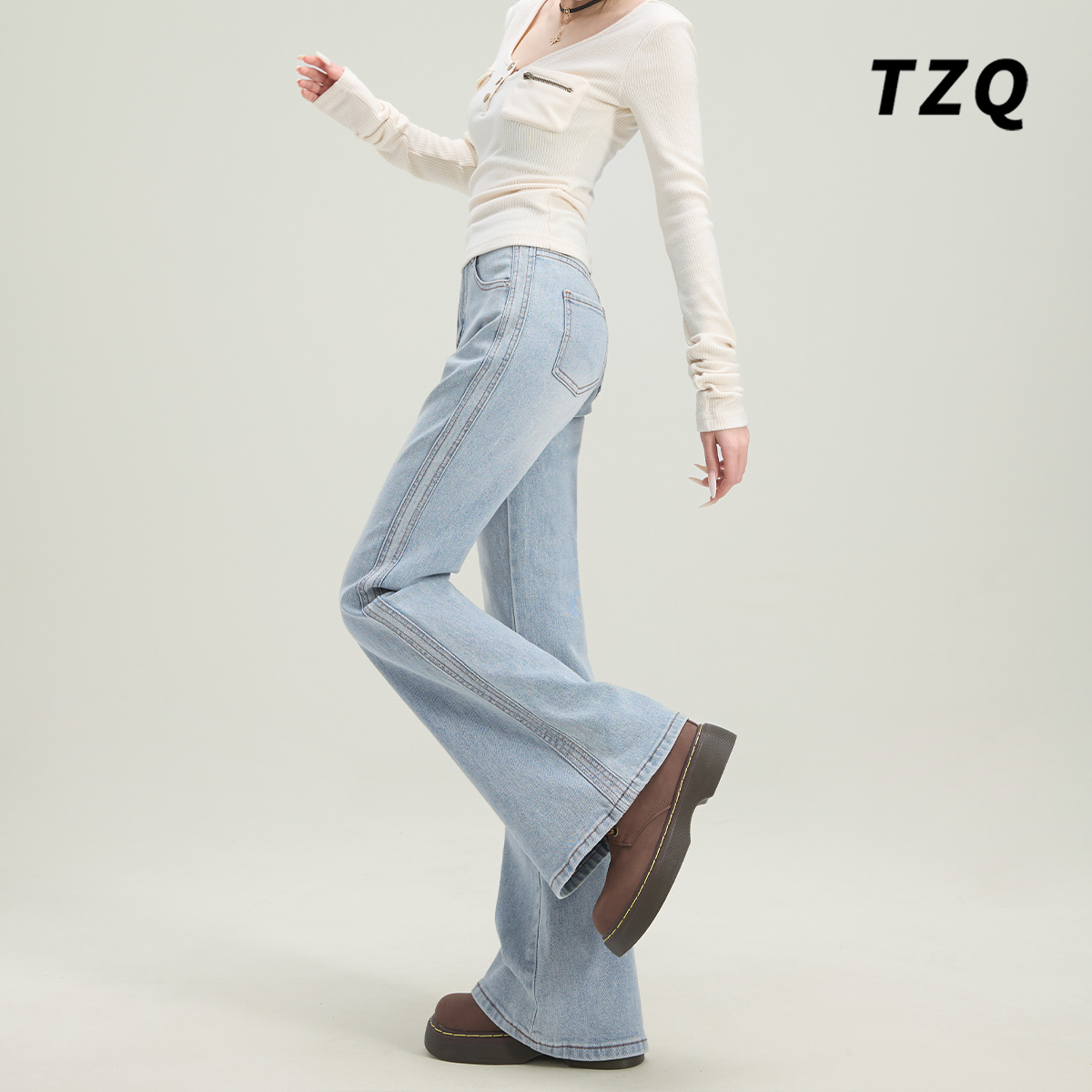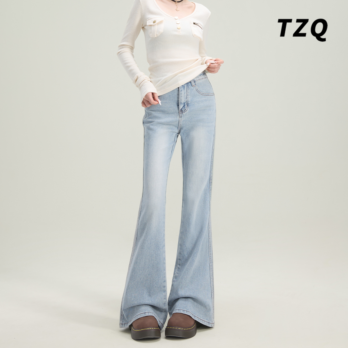 美式复古微喇牛仔裤女爆款2025薄款高腰显瘦修身阔脚马蹄喇叭裤子