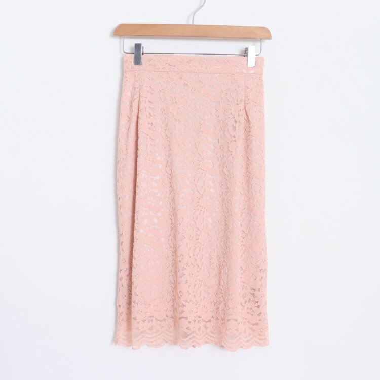 D120106日单新款松紧高腰显瘦好搭配女纯色气质蕾丝中长款半身裙