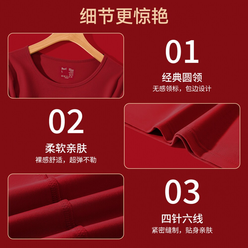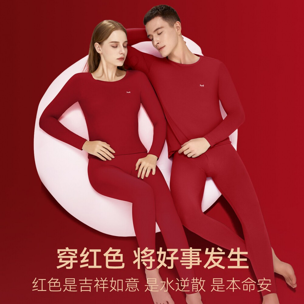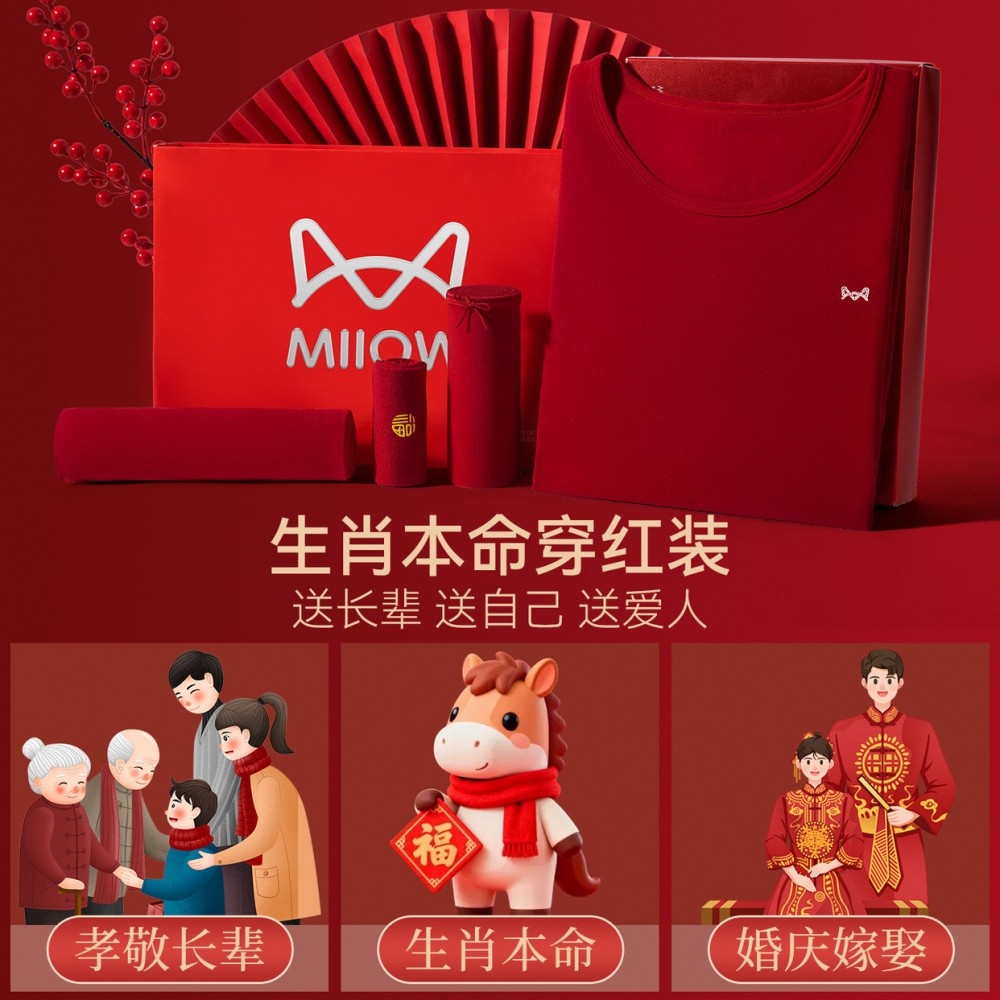 猫人本命年纯棉保暖内衣套装安哥拉红冬2026马年男女结婚秋衣秋裤