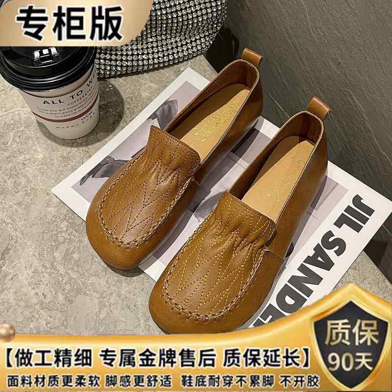 新款202大5年春秋牛新款筋软底码女皮鞋复妈妈鞋休闲中老年软皮单