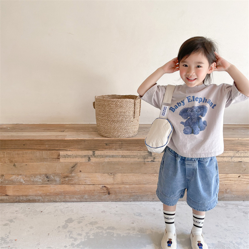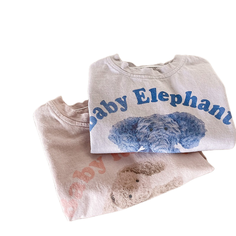 儿童韩版麻棉数码印花短袖T恤夏季款男女童打底衫女宝宝卡通上衣