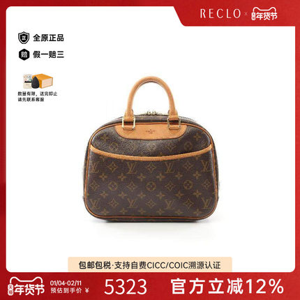 中古LV路易威登女包B级9新Trouville珍妮包涂层防水帆布手提包