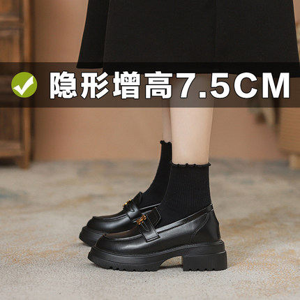 真皮内增高凯旋门乐福鞋女2025年新款厚底英伦风小皮鞋一脚蹬单鞋
