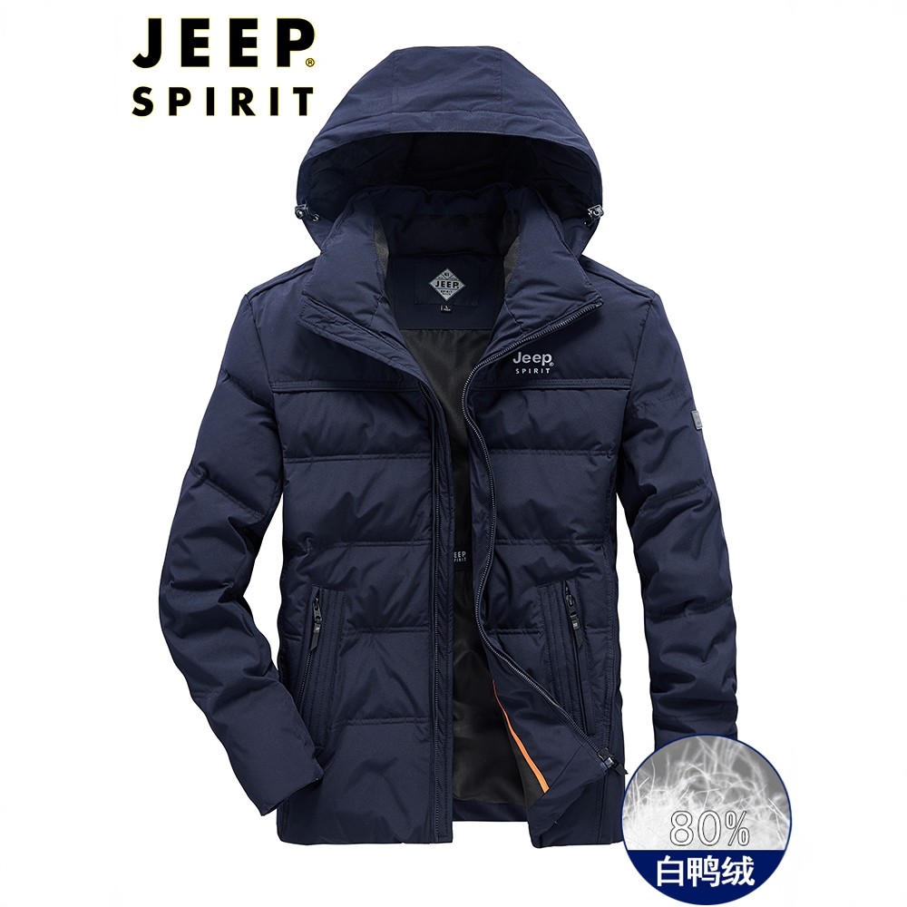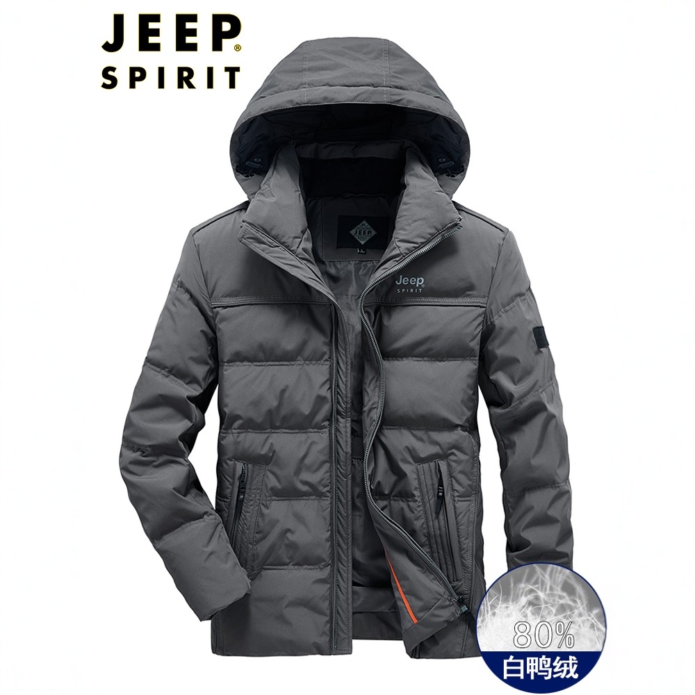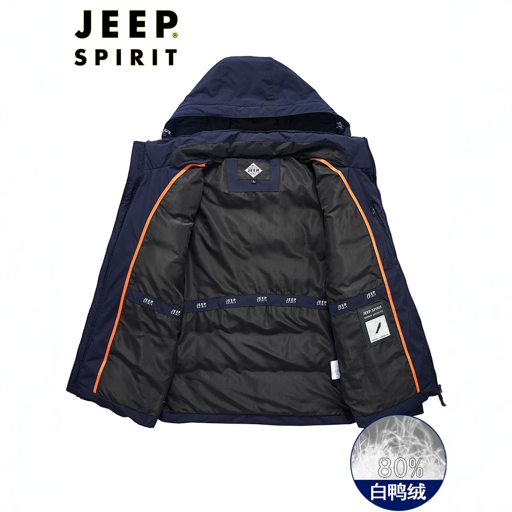 JEEP吉普羽绒服男士冬季连帽加厚防寒保暖白鸭绒短款时尚百搭外套