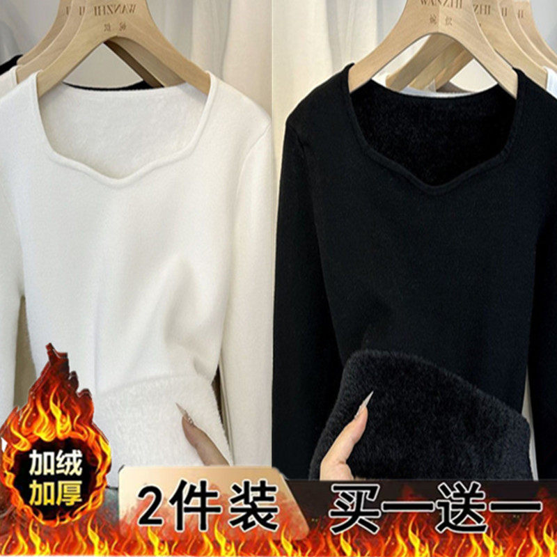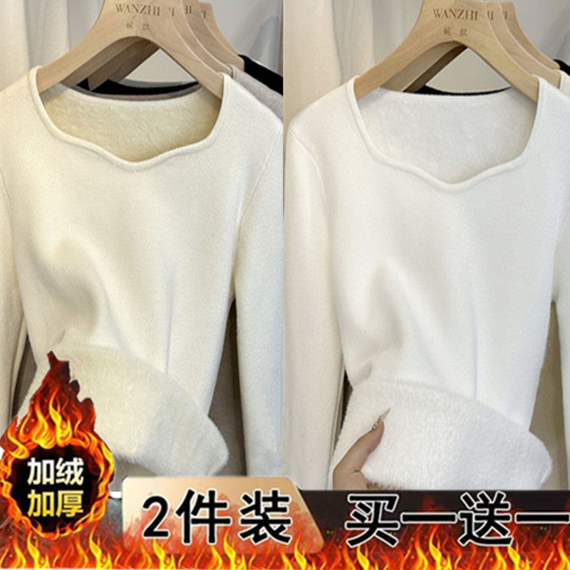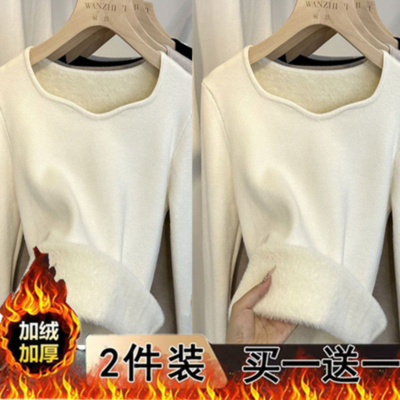 200斤加绒加厚打底衫女秋冬款上衣胖mm一体暖绒内搭保暖长袖T恤女