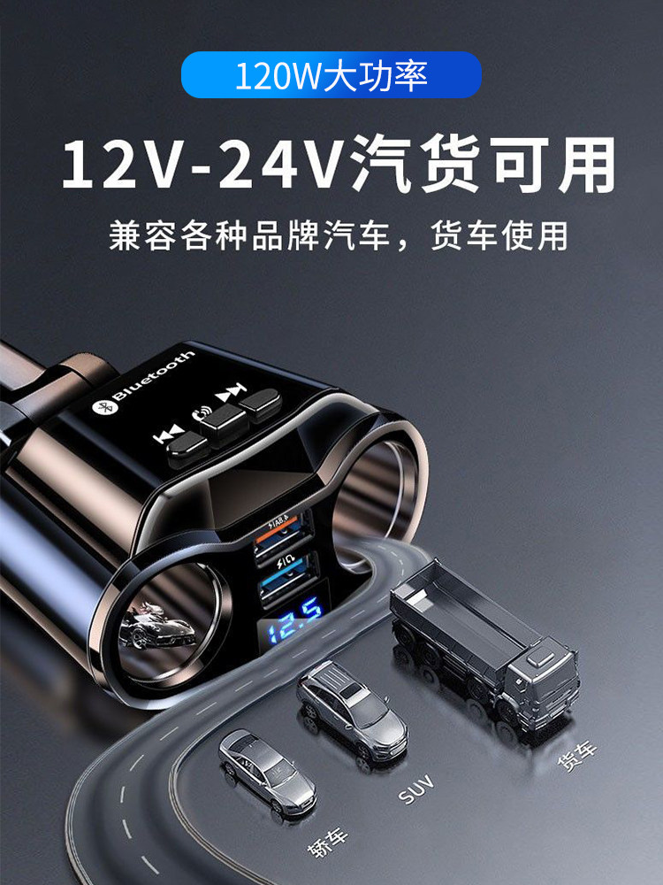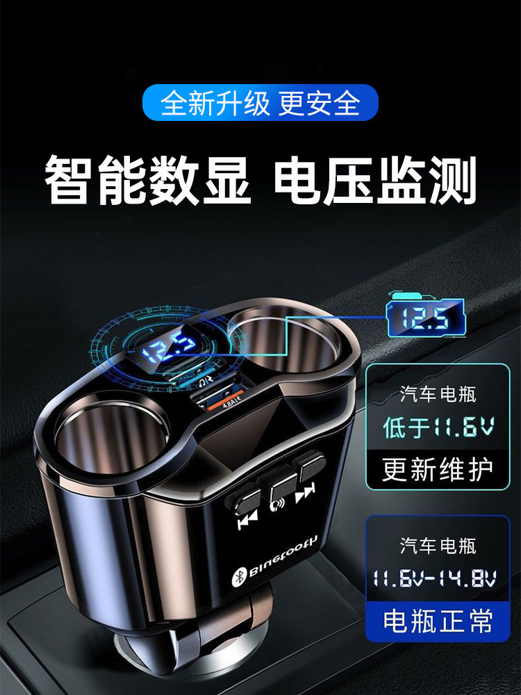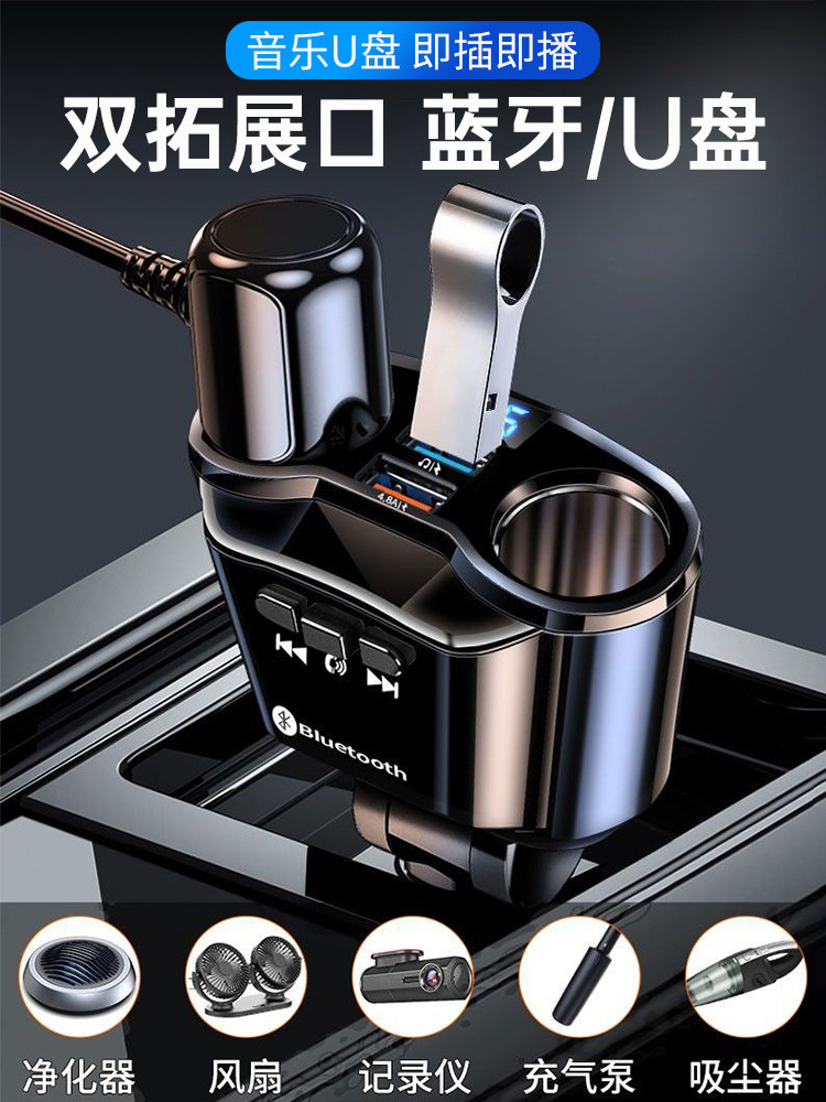 车载充电器带蓝牙接收器一拖二三音乐U盘多功能usb汽车点烟器车充