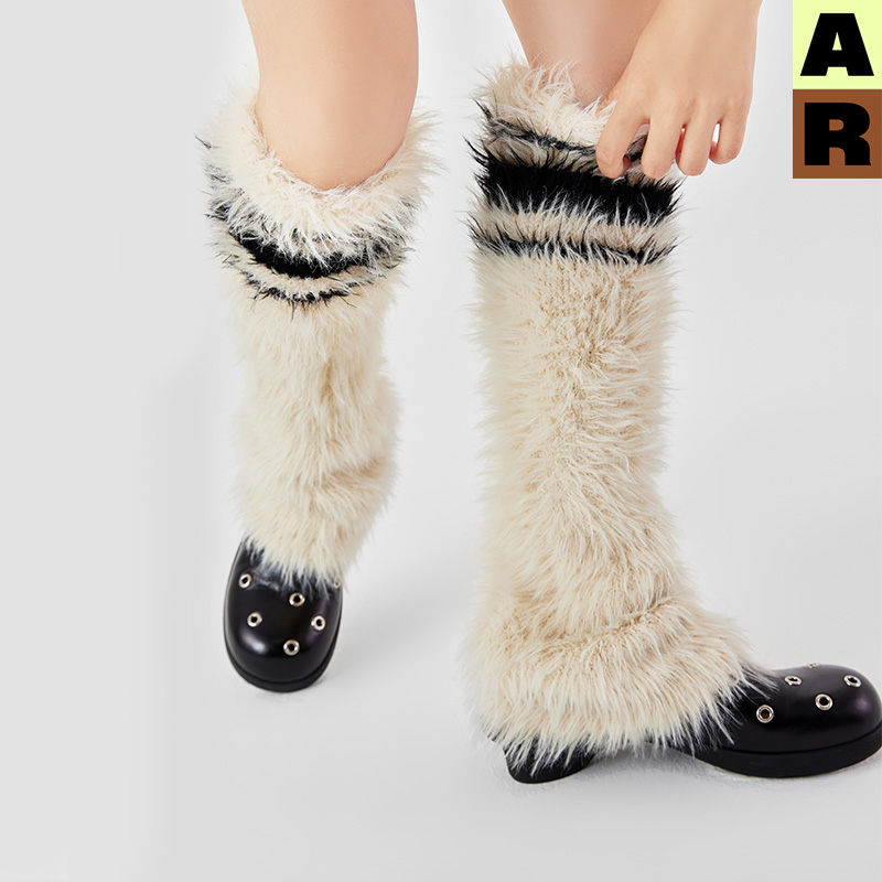 AR原创撞色毛毛袜套2025新款保暖袜子护腿防滑过膝腿套r线基础线