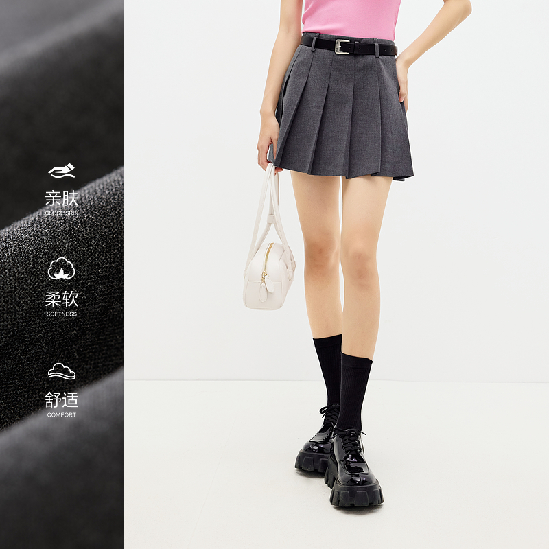 水云间深灰色裙裤a字短裤子女压褶设计休闲裤天才少女风2025夏款