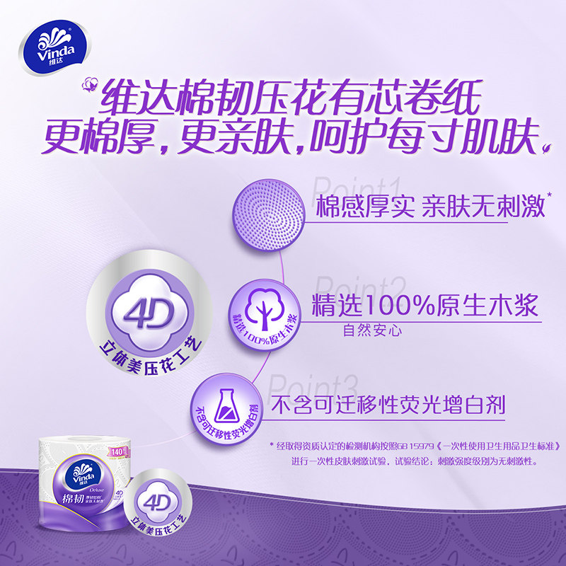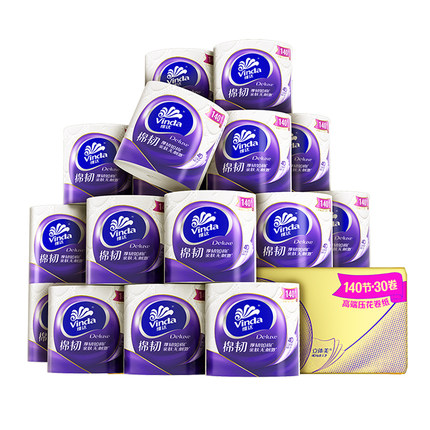 维达立体美棉韧有芯卷纸140节30卷厕所家用卷筒纸厕纸实惠装
