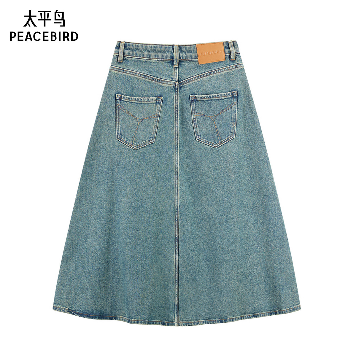 太平鸟女装2024年春季新款高腰褶裥牛仔长裙半身裙裙子女