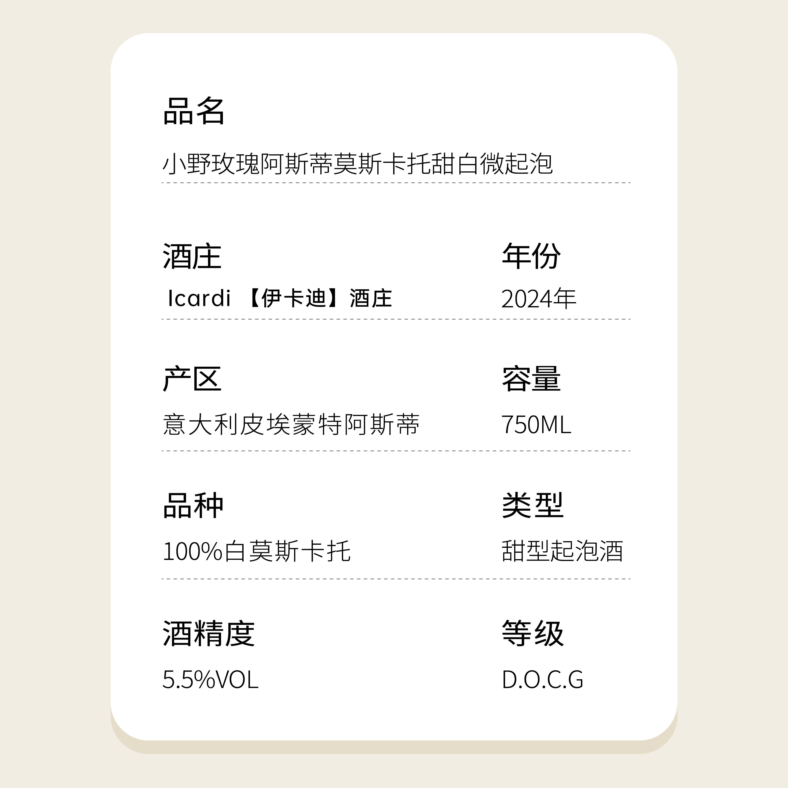 小野玫瑰Moscatod'Asti起泡酒